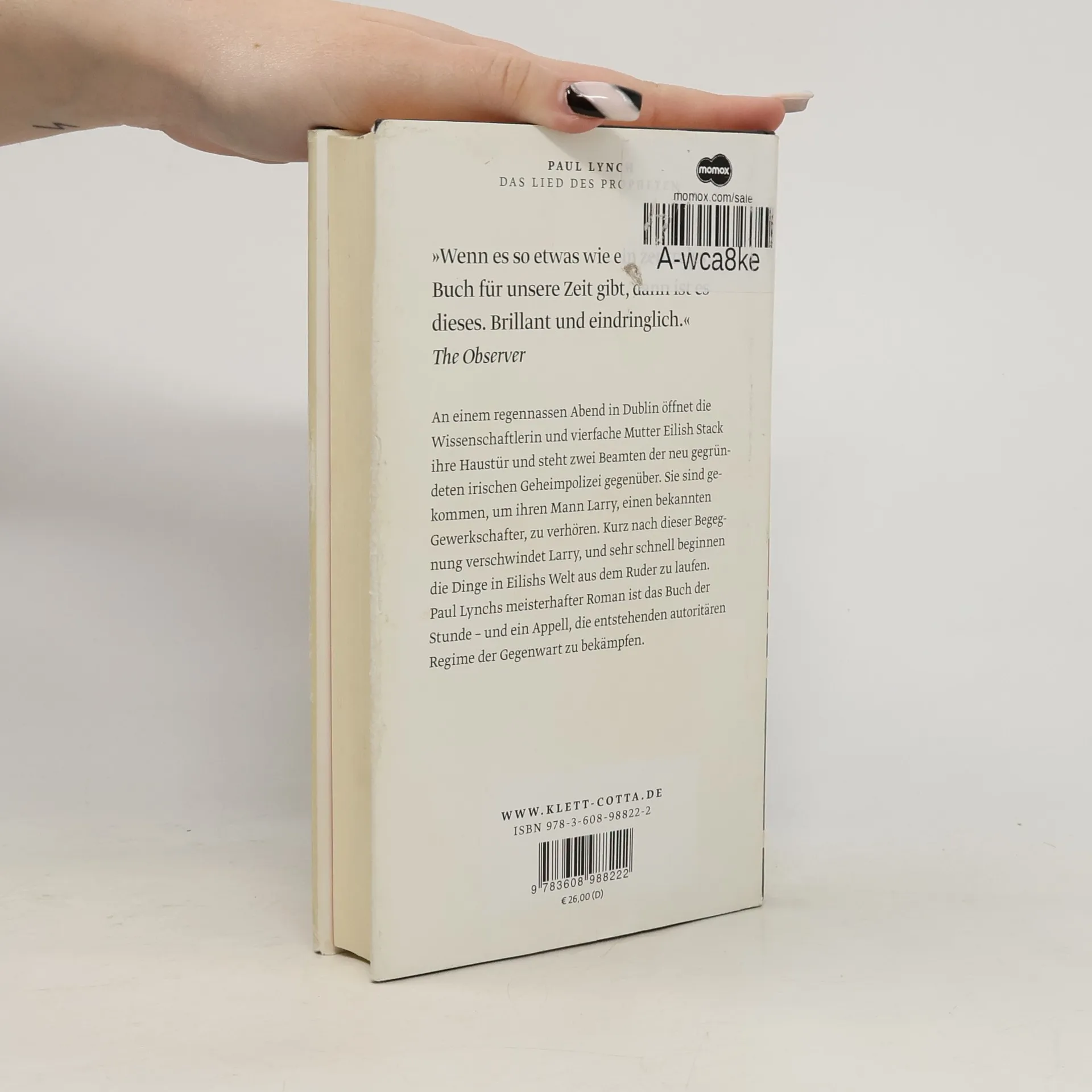 An einem regennassen Abend in Dublin öffnet die Wissenschaftlerin und vierfache Mutter Eilish Stack ihre Haustür und steht zwei Beamten der neu gegründeten irischen Geheimpolizei gegenüber. Sie sind gekommen, um ihren Mann Larry, einen bekannten Gewerkschafter, zu verhören. Kurz nach dieser Begegnung verschwindet Larry, und sehr schnell beginnen die Dinge in Eilishs Welt aus dem Ruder zu laufen.Irland befindet sich in der Gewalt einer Regierung, die auf dem Weg in die Tyrannei ist. Eilish findet sich in der alptraumhaften Logik einer kollabierenden Gesellschaft wieder, angegriffen von unsichtbaren Kräften, die sich ihrer Kontrolle entziehen. Sie ist gezwungen, alles zu tun, um ihre Familie zu schützen und alle zusammenzuhalten. Wie soll sie ihren Kindern erklären, was passiert ist, wenn sie nach dem Vater fragen? Wie wird ihr eigener zunehmend dementer Vater auf die gravierenden Veränderungen seines Alltags reagieren? Und wie weit wird Eilish selbst gehen, um sich und ihre Familie zu retten? »Das Lied des Propheten« ist ein atemloses Porträt einer Familie am Rande der Katastrophe, das stilistisch und emotional seinesgleichen sucht. Paul Lynchs meisterhafter Roman ist das Buch der Stunde – und ein Appell, die entstehenden autoritären Regime der Gegenwart zu bekämpfen.