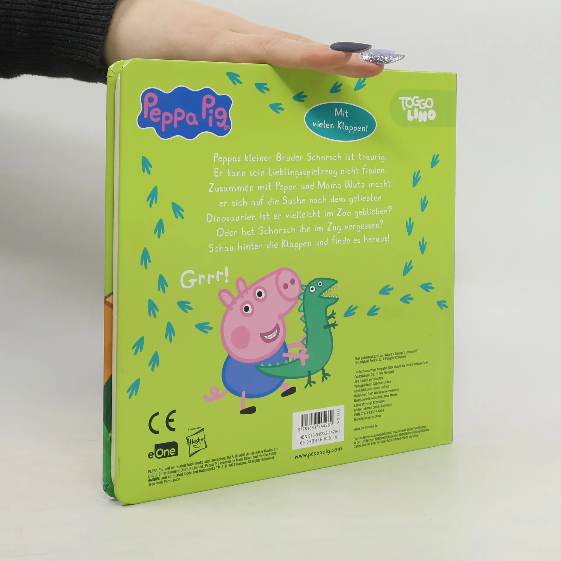 Peppas kleiner Bruder Schorsch ist traurig. Er kann sein Lieblingsspielzeug nicht finden. Zusammen mit Peppa und Mama Wutz macht er sich auf die Suche nach dem geliebten Dinosaurier. Ist er vielleicht im Zoo geblieben? Oder hat Schorsch ihn im Zug vergessen? Schau hinter die Klappen und finde es heraus!
