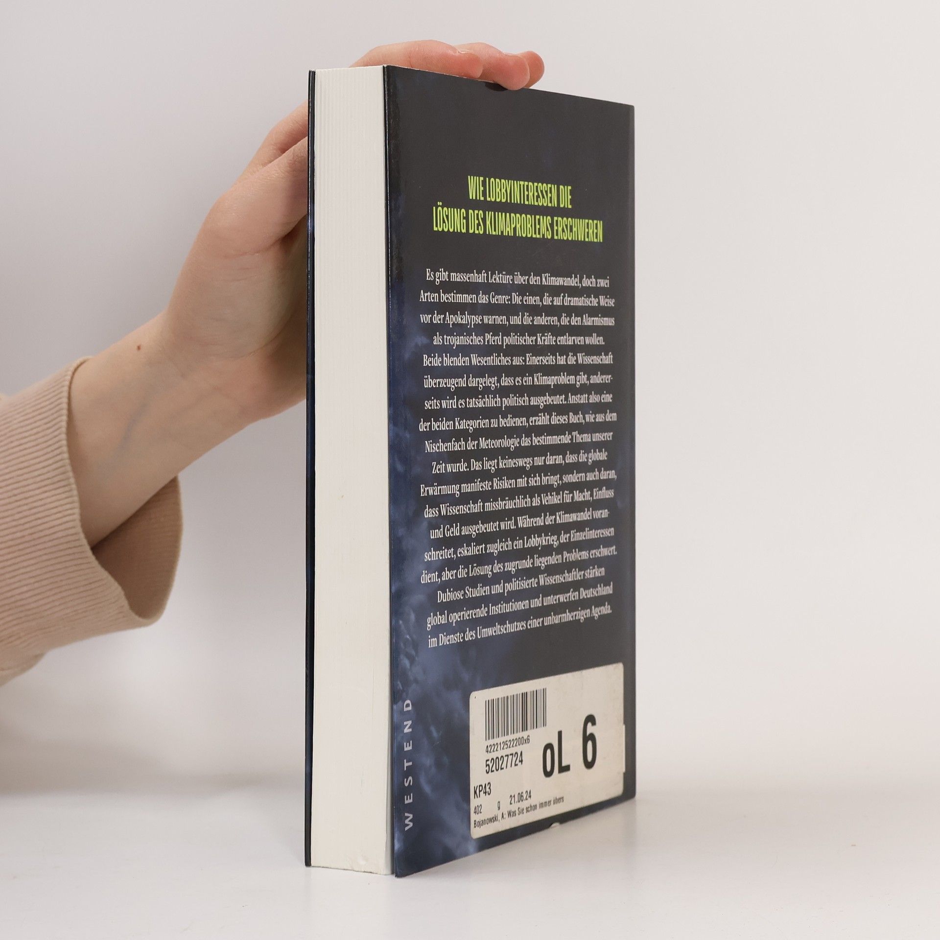 Es gibt massenhaft Lektüre über den Klimawandel, doch zwei Arten bestimmen das Genre: die eine, die auf dramatische Weise vor der Apokalypse warnt, und die andere, die den Alarmismus als trojanisches Pferd politischer Kräfte entlarven will. Beide blenden Wesentliches aus: Einerseits hat die Wissenschaft überzeugend dargelegt, dass es ein Klimaproblem gibt, andererseits wird es tatsächlich politisch ausgebeutet. Anstatt also eine der beiden Kategorien zu bedienen, erzählt dieses Buch, wie aus dem Nischenfach der Meteorologie das bestimmende Thema unserer Zeit wurde. Das liegt keineswegs nur daran, dass die globale Erwärmung manifeste Risiken mit sich bringt, sondern auch daran, dass Wissenschaft als Vehikel für Macht, Einfluss und Geld missbraucht wird. Während der Klimawandel voranschreitet, eskaliert zugleich ein Lobbykrieg, der Einzelinteressen dient, aber die Lösung des zugrundeliegenden Problems erschwert. Dubiose Studien und politisierte Wissenschaftler stärken global operierende Institutionen und unterwerfen Deutschland im Dienste des Umweltschutzes einer unbarmherzigen Agenda.