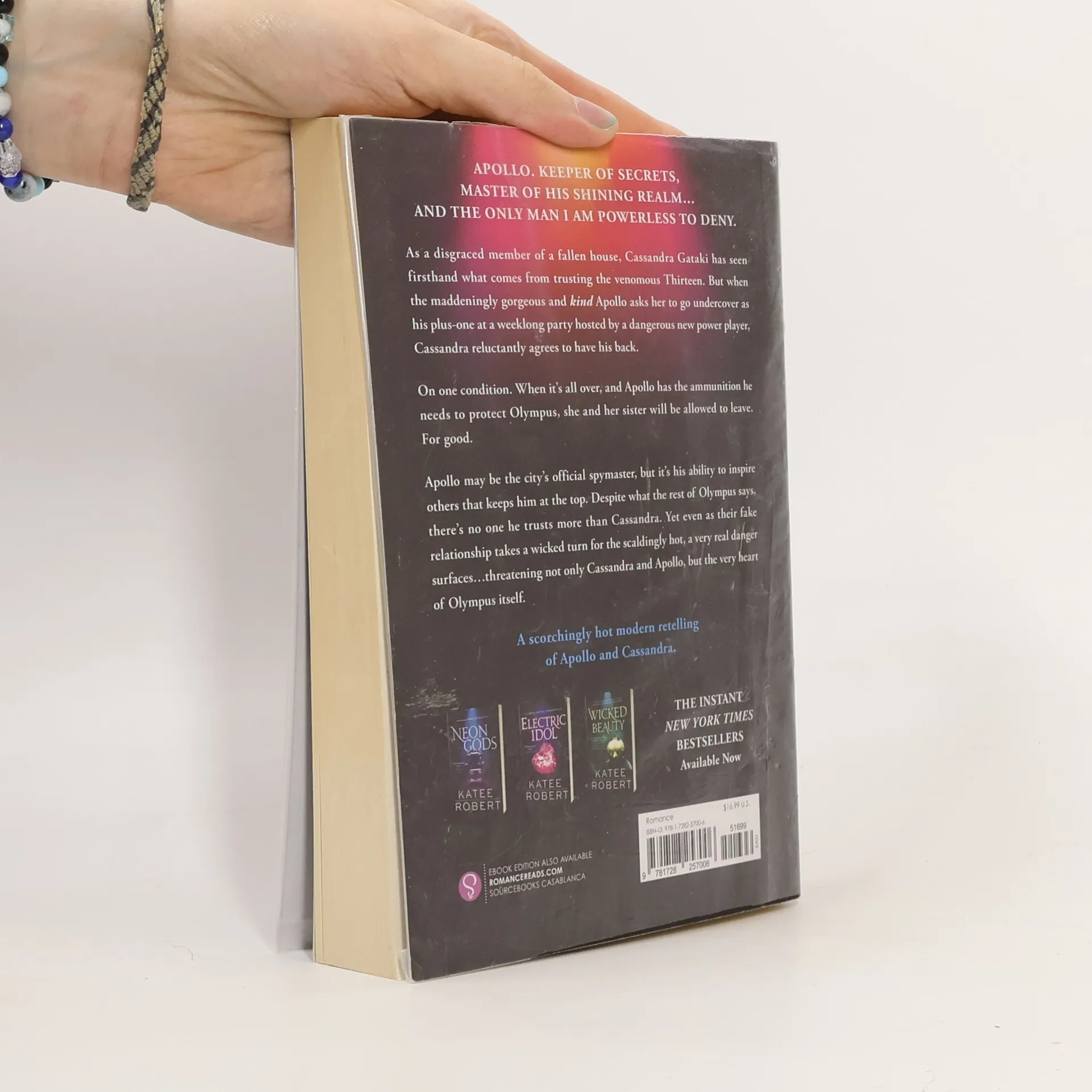 There's nowhere more dangerous than Olympus, and no one more captivating than its golden god, Apollo. Keeper of secrets and master of his realm, he is the only man Cassandra Gataki cannot resist. As a disgraced member of a fallen house, Cassandra knows the risks of trusting the venomous Thirteen. When the stunning and kind Apollo asks her to be his plus-one at a week-long party hosted by a new power player, she reluctantly agrees, but only if she and her sister can leave afterward for good. Apollo, the city's spymaster, relies on his ability to inspire, and despite what others say, he trusts Cassandra more than anyone. As their fake relationship heats up, a very real danger emerges, threatening not just them but the heart of Olympus itself. This modern retelling of Apollo and Cassandra is both sinful and sweet, blending intrigue with romance. With a backdrop of political machinations and personal stakes, the story promises a thrilling ride through a world where trust is scarce and danger lurks at every turn.