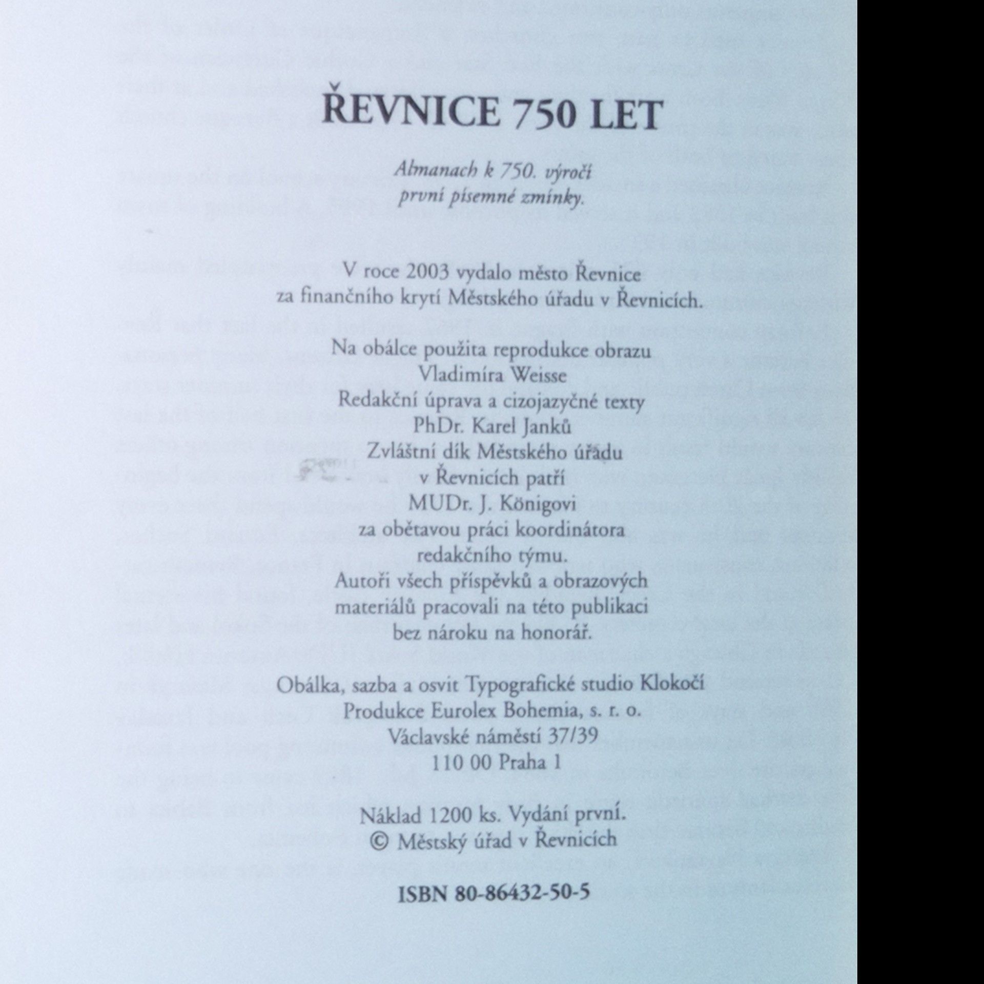 Řevnice 1253-2003. Almanach k výročí Řevnice 750 let, Various authors
