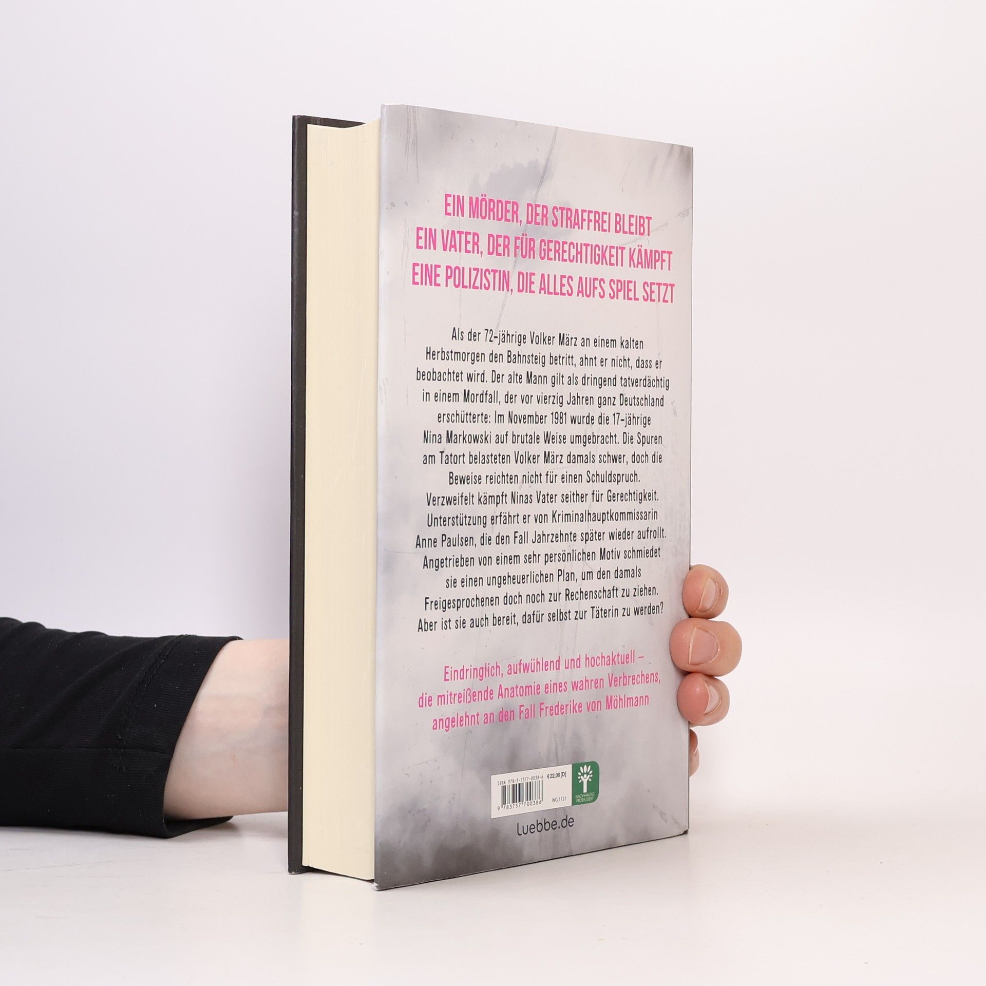 Ein Mörder, der straffrei bleibt Ein Vater, der für Gerechtigkeit kämpft Eine Polizistin, die alles aufs Spiel setzt Als der 72jährige Volker März an einem kalten Herbstmorgen den Bahnsteig betritt, ahnt er nicht, dass er beobachtet wird. Der alte Mann gilt als dringend tatverdächtig in einem Mordfall, der vor 40 Jahren ganz Deutschland erschütterte: Im November 1981 wurde die 17jährige Nina Markowski auf brutale Weise umgebracht. Die Spuren am Tatort belasteten Volker März damals schwer, doch die Beweise reichten nicht für einen Schuldspruch. Verzweifelt kämpft Ninas Vater seither für Gerechtigkeit. Unterstützung erfährt er von Kriminalhauptkommissarin Anne Paulsen, die den Fall Jahrzehnte später wieder aufrollt. Angetrieben von einem sehr persönlichen Motiv schmiedet sie einen ungeheuerlichen Plan, um den damals Freigesprochenen doch noch zur Rechenschaft zu ziehen. Aber ist sie auch bereit, dafür selbst zur Täterin zu werden? Eindringlich, aufwühlend und hochaktuell - die mitreißende Anatomie eines wahren Verbrechens, angelehnt an den Fall Frederike von Möhlmann
