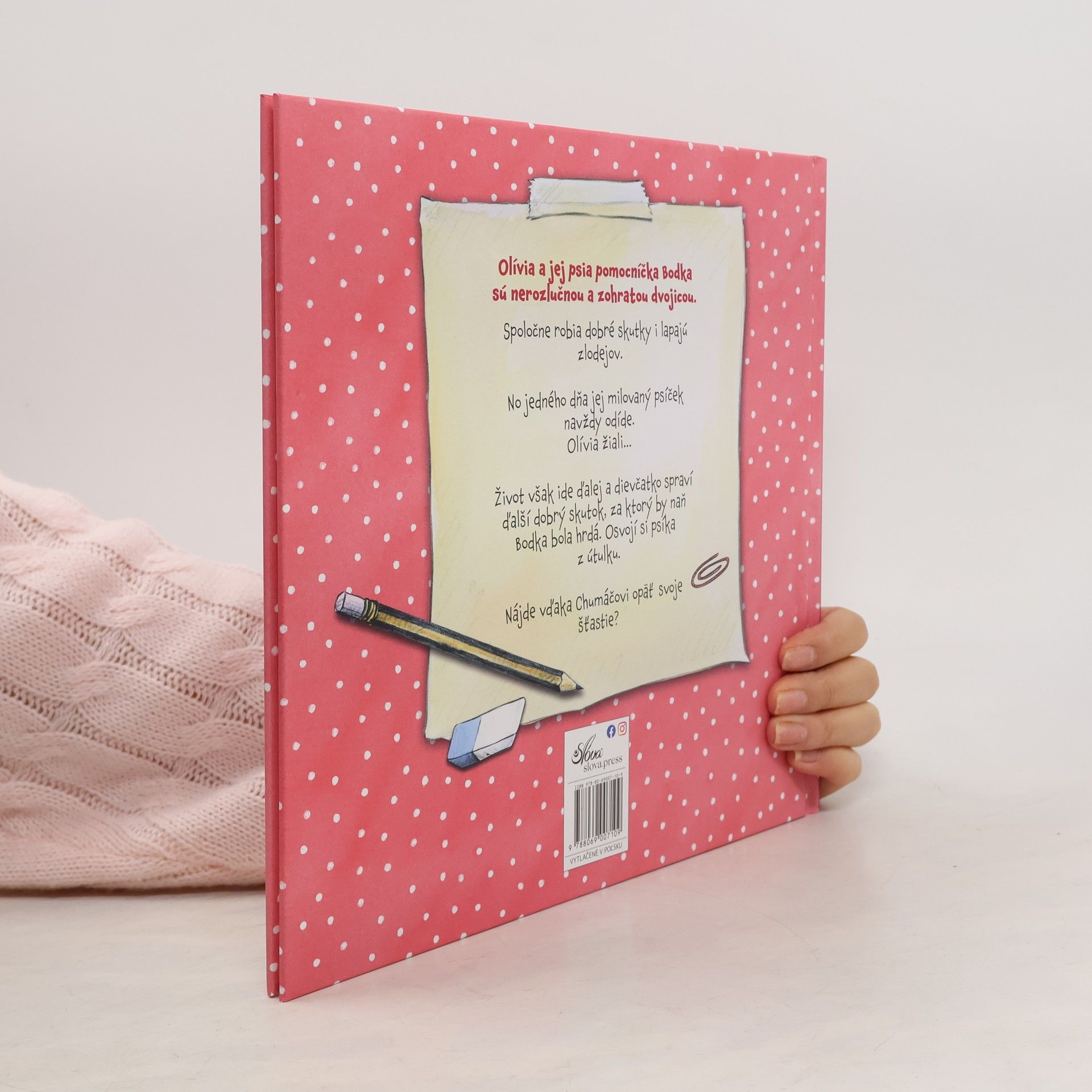 Olívia a jej psia pomocníčka Bodka sú nerozlučnou a zohratou dvojicou. Spoločne robia dobré skutky i lapajú zlodejov. No jedného dňa jej milovaný psíček navždy odíde. Olívia žiali... Život však ide ďalej a dievčatko spraví ďalší dobrý skutok, za ktorý by naň Bodka bola hrdá. Osvojí si psíka z útulku. Nájde vďaka Chumáčovi opäť svoje šťastie? Preklad: Mária Lachkovičová
