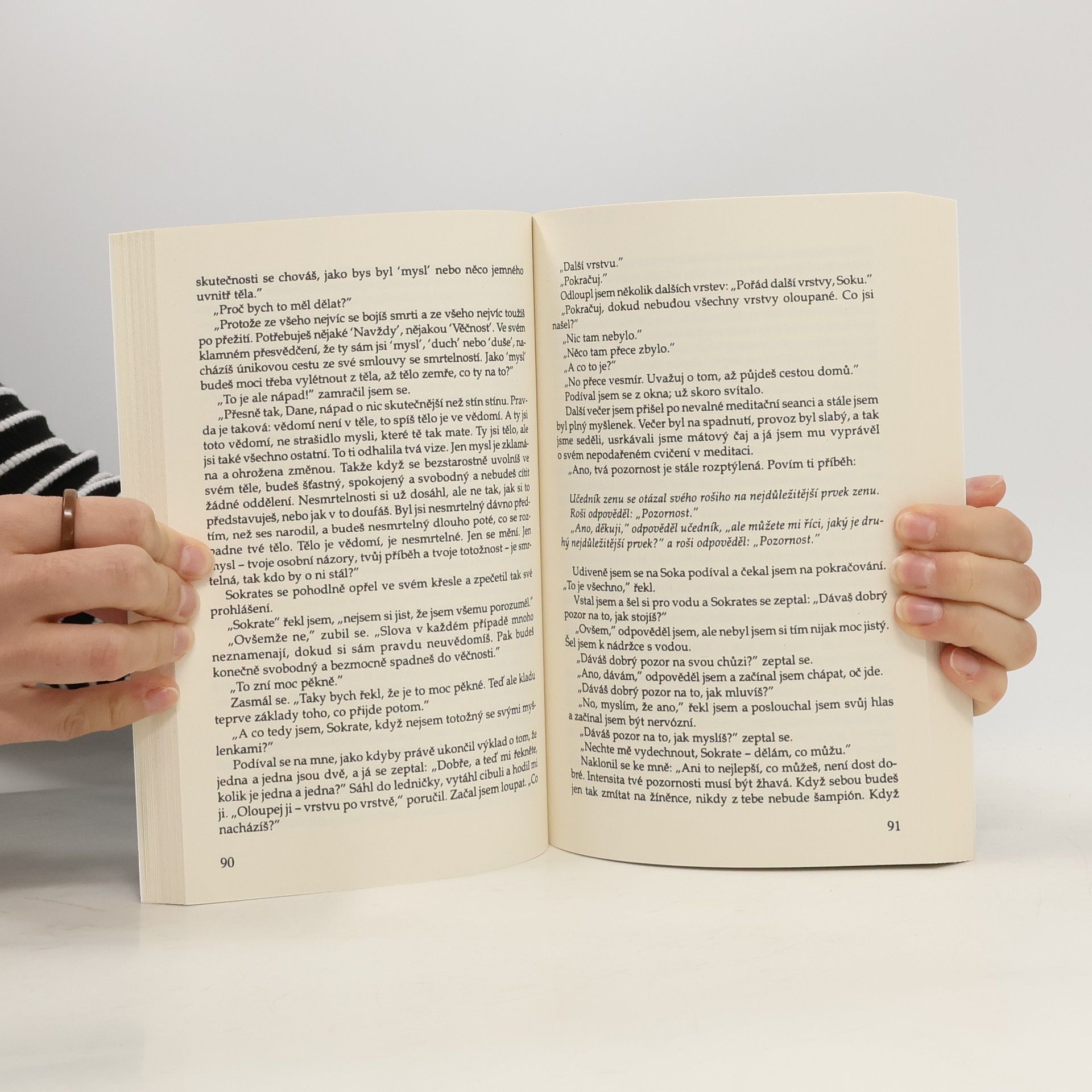 Autor této knihy, někdejší mistr světa v gymnastice vyučuje dnes na amerických universitách různé formy duchovně-tělesných cvičení. V této knize líčí příběh své "niterné cesty", kdy se setkal se svým guru, jemuž dal jméno Sókratés. Předností příběhu o nesnadné cestě od pouhého vnějšího úspěchu k nalezení sebe sama je autenticky vyznívající snaha o zakotvení pomíjivého, každodenního života v hodnotách, které trvají věčně a jsou zdrojem jeho smyslu.