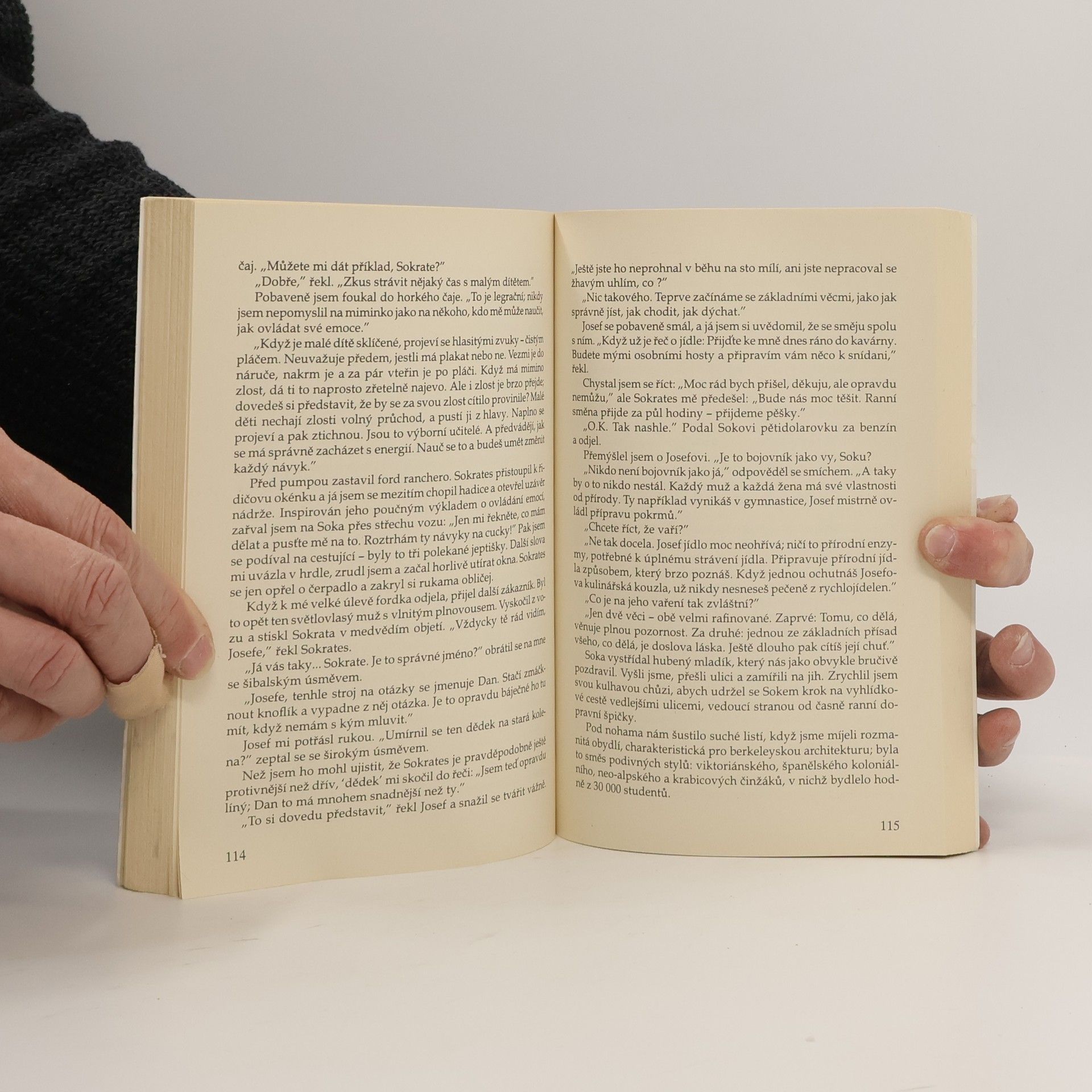 Autor této knihy, někdejší mistr světa v gymnastice vyučuje dnes na amerických universitách různé formy duchovně-tělesných cvičení. V této knize líčí příběh své "niterné cesty", kdy se setkal se svým guru, jemuž dal jméno Sókratés. Předností příběhu o nesnadné cestě od pouhého vnějšího úspěchu k nalezení sebe sama je autenticky vyznívající snaha o zakotvení pomíjivého, každodenního života v hodnotách, které trvají věčně a jsou zdrojem jeho smyslu.