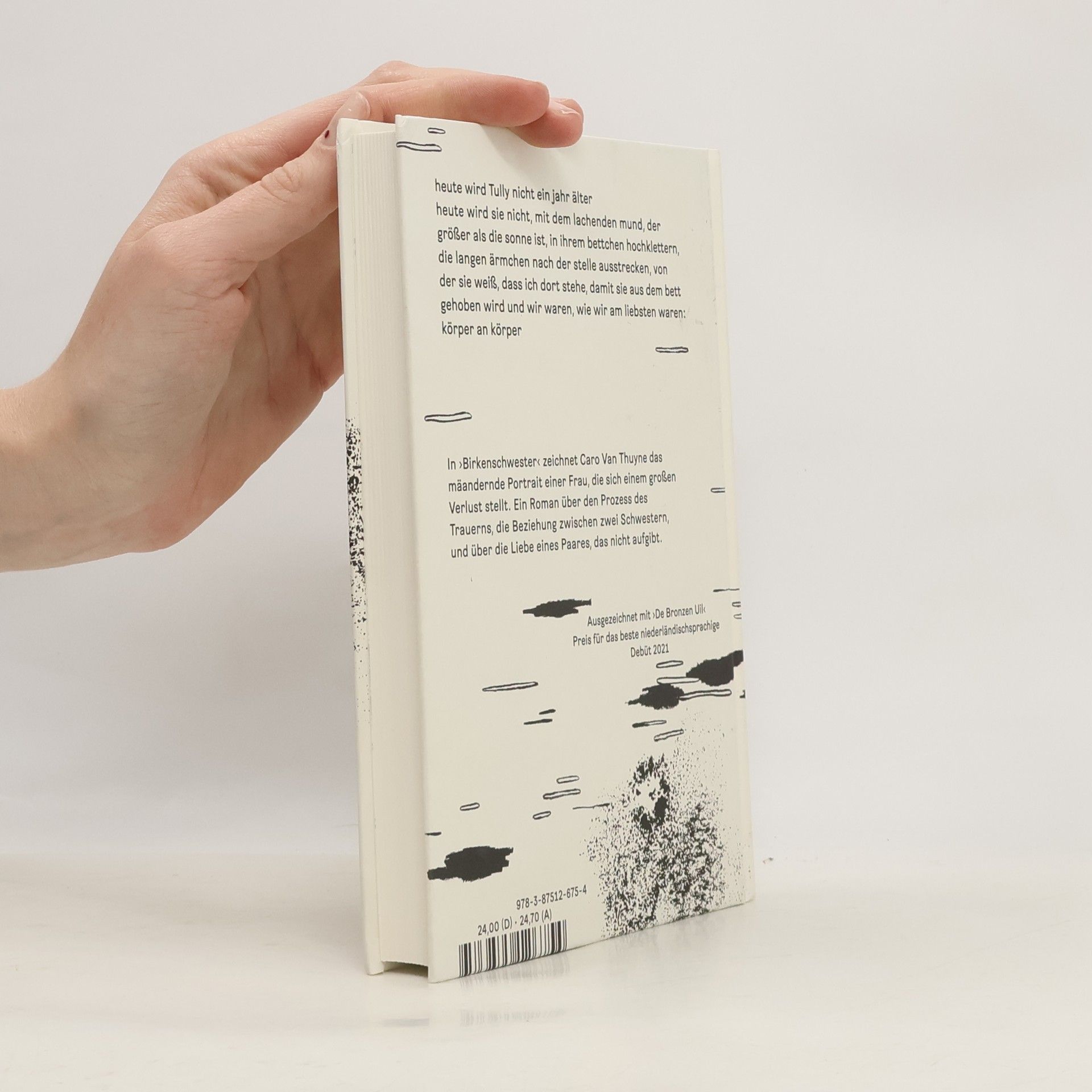 Als ihre Trauer zu viel Raum einnimmt, lässt Mari ihren Mann Felix zurück und macht sich auf den Weg. Während sie versucht, sich von ihrem Schmerz freizuwandern und einen neuen Pfad für ihr Leben zu finden, baut Felix einen Ort, an dem sich Mari vielleicht wieder zu Hause fühlen kann. Monatelang folgt sie dem Weg des Flusses, allein und doch begleitet – von Büchern, ihren Notizen und einer Dohle – Richtung Meer. In ›Birkenschwester‹ zeichnet Caro Van Thuyne das mäandernde Portrait einer Frau, die sich einem großen Verlust stellt. Ein Roman über den Prozess des Trauerns, die Beziehung zwischen zwei Schwestern, und über die Liebe eines Paares, das nicht aufgibt.