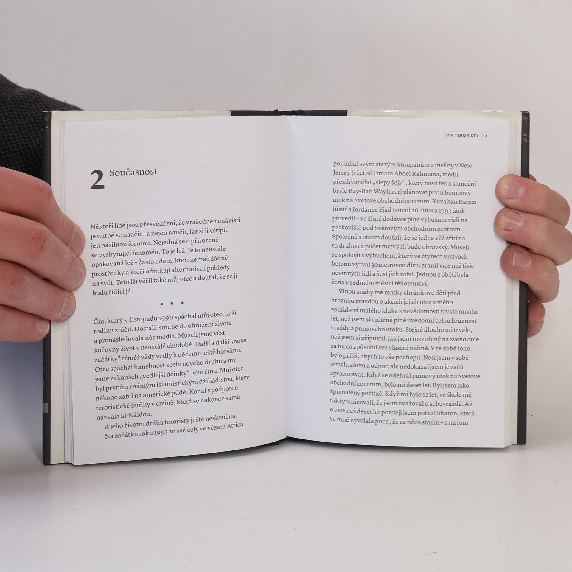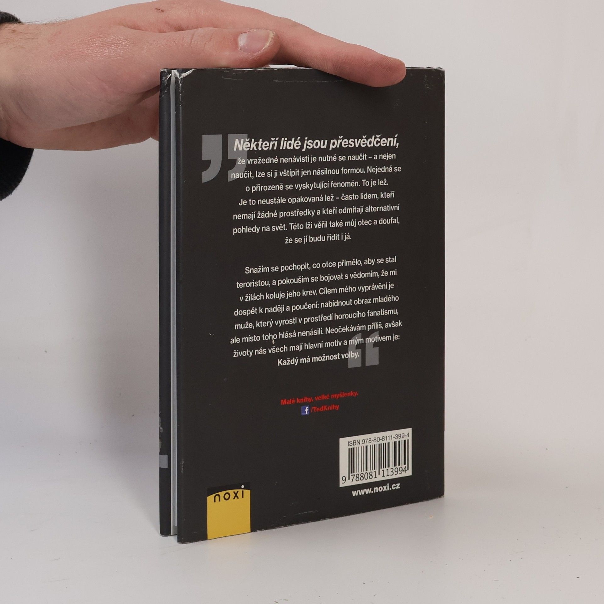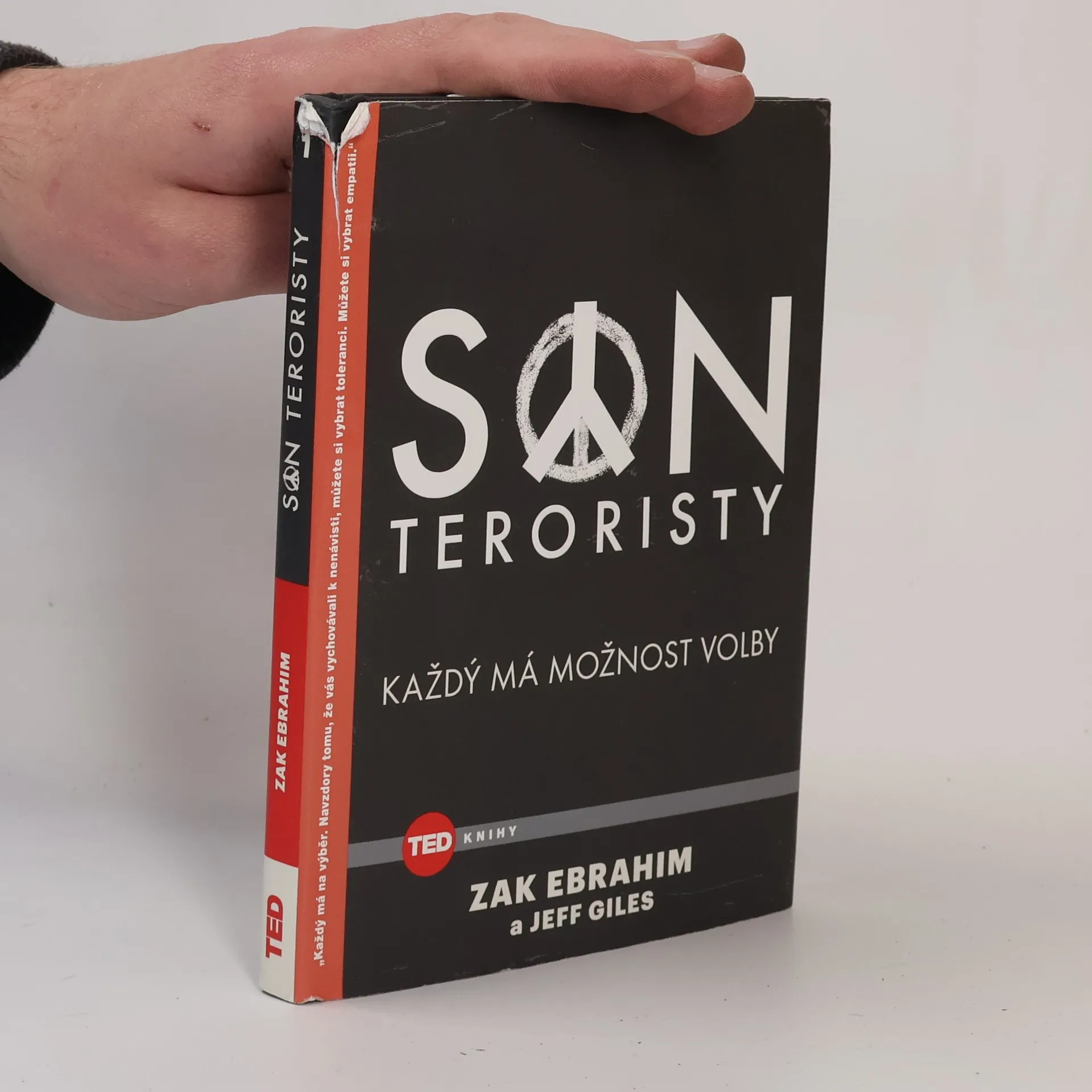 Důvěrná zpověď chlapce vychovaného otcem-teroristou, který si na rozdíl od něj vybral odlišnou cestu. Zaku Ebrahimovi bylo pouhých sedm let, v roce 1990 jeho otec El-Sayyid Nosair zastřelil vůdce Židovské obranné ligy. Po otcově uvěznění byla rodina neustále pronásledována a perzekuována. Přestože radikalizovaného otce formovala fanatická víra, u jeho plachého syna nenávistné ideje neuspěly. Čím byl starší, tím více si uvědomoval hrůzný dopad otcových činů a rozhodl se svůj život zasvětit podporování míru. Zak Ebrahim se narodil v Pittsburghu v Pensylvánii 24. března 1983 jako syn egyptského průmyslového inženýra a americké učitelky. Zasvětil svůj život jasnému vymezení se proti terorismu a šíření poselství mírů a nenásilí. Jeff Giles píše pro The New York Times Book Review, Rolling Stones a Newsweek a je redaktorem týdeníku Entertainment Weekly.