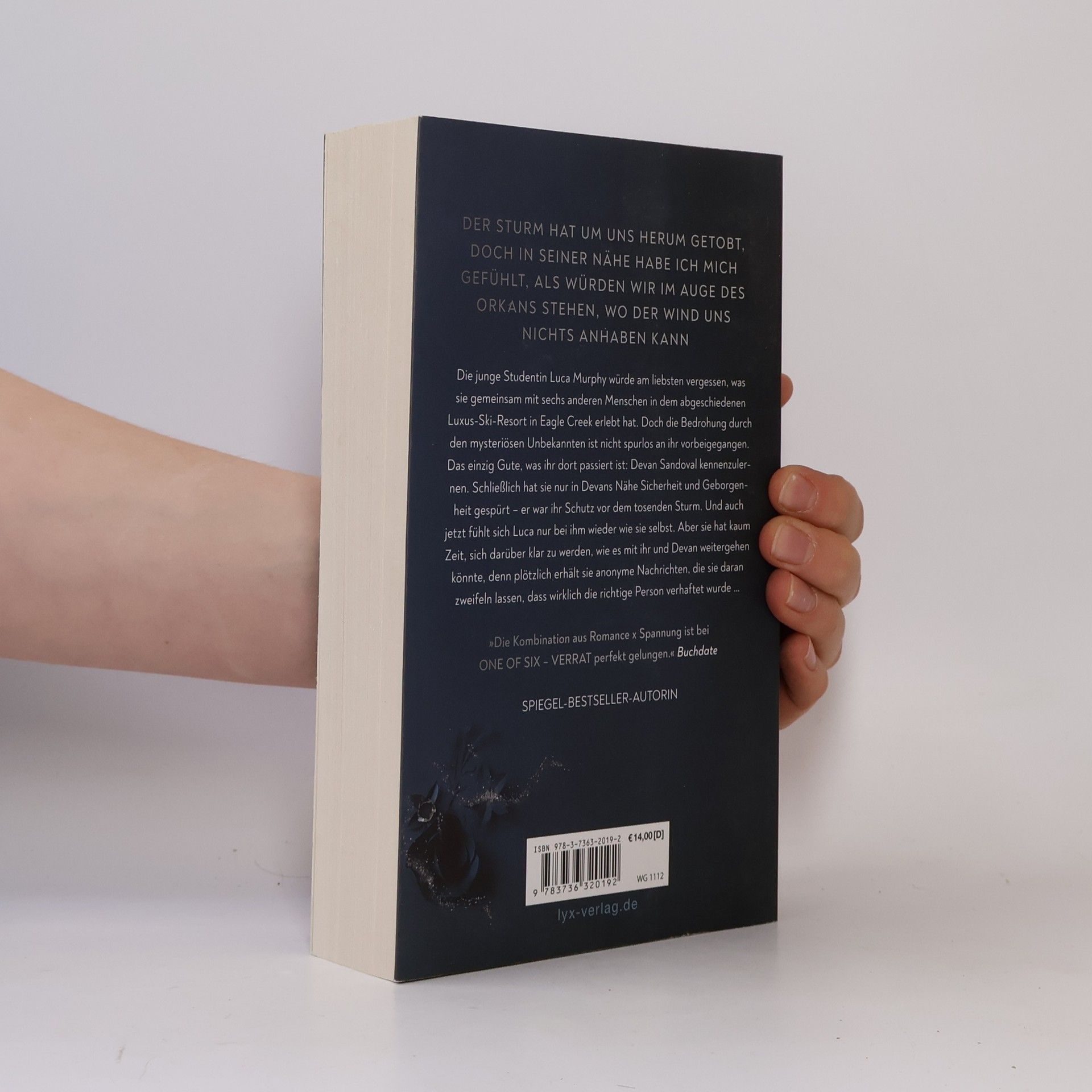 Spannend und romantisch: New-Adult-Suspense bei LYX Die Tage der Angst sind vorbei. Die sechs College-Studierenden mussten sich in dem abgeschiedenen Luxus Ski Resort in Eagle Creek ihren dunkelsten Geheimnissen stellen und lernen sich zu vertrauen. Denn nur gemeinsam konnten sie dem mysteriösen Unbekannten entkommen, der sie erpresst und bedroht hat. All das hat die Gruppe zusammengeschweißt - und bei einigen auch romantische Gefühle entstehen lassen. Doch nun wird diese Anziehung im beschaulichen Belville erneut auf die Probe gestellt, als sie sich nach einer Reihe von unerklärlichen Ereignissen die Frage stelle müssen, ob sie der Gefahr wirklich entkommen sind ... Abschlussband der ONE-OF-SIX-Dilogie