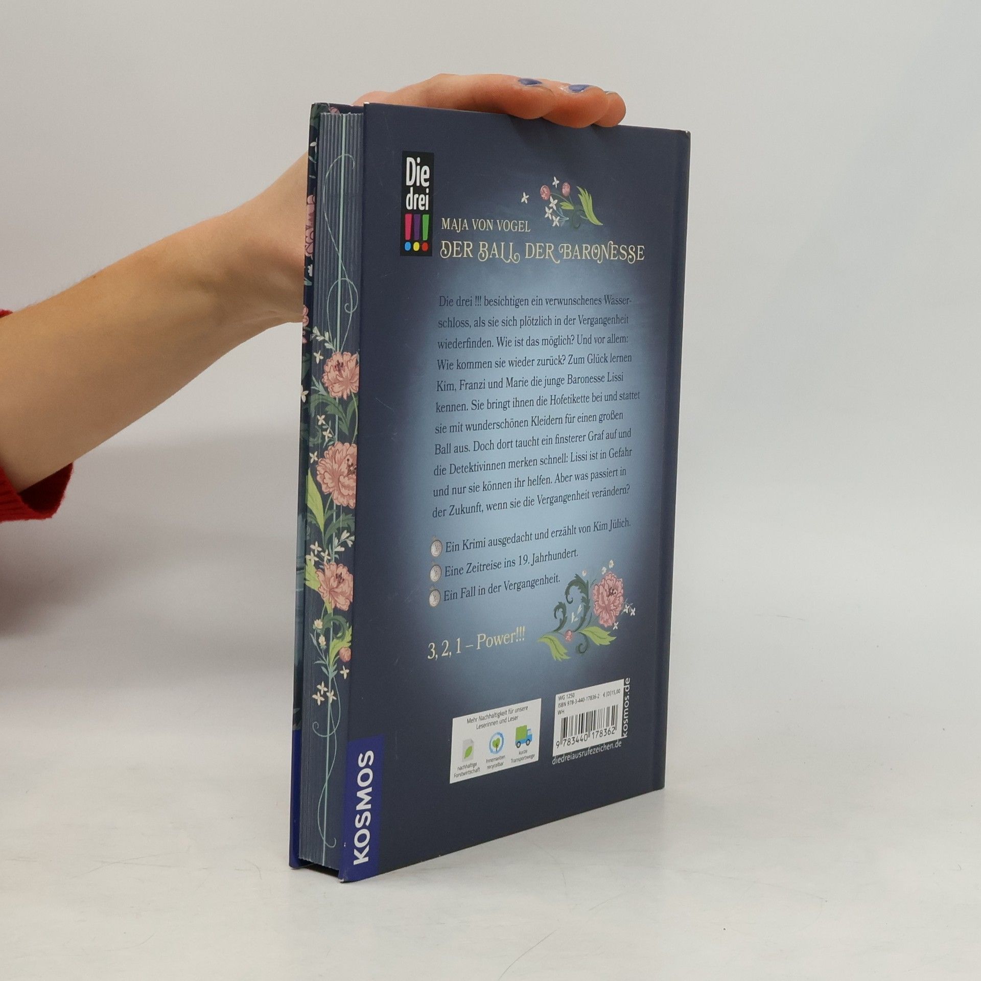Zurück ins 19. Jahrhundert! Kim, Franzi und Marie besichtigen ein altes Wasserschloss. Als Kim auf der Treppe stolpert, finden sich die Freundinnen plötzlich in der Vergangenheit wieder. Sie lernen Baronesse Lissi kennen, die gerne Schriftstellerin werden möchte. Durch Zufall erfahren die drei !!!, dass Lissi mit einem Grafen verheiratet werden soll. Das müssen sie verhindern, denn dieser verhält sich sehr verdächtig. Die drei !!! erfahren bei ihren Ermittlungen viel über die Vergangenheit. Wie lebten die Menschen damals? Wie sah ihre Kleidung aus? Ein spannender drei !!!-Krimi mit stimmungsvoller Ausstattung - ausgedacht und geschrieben von Kim für Franzi und Marie.