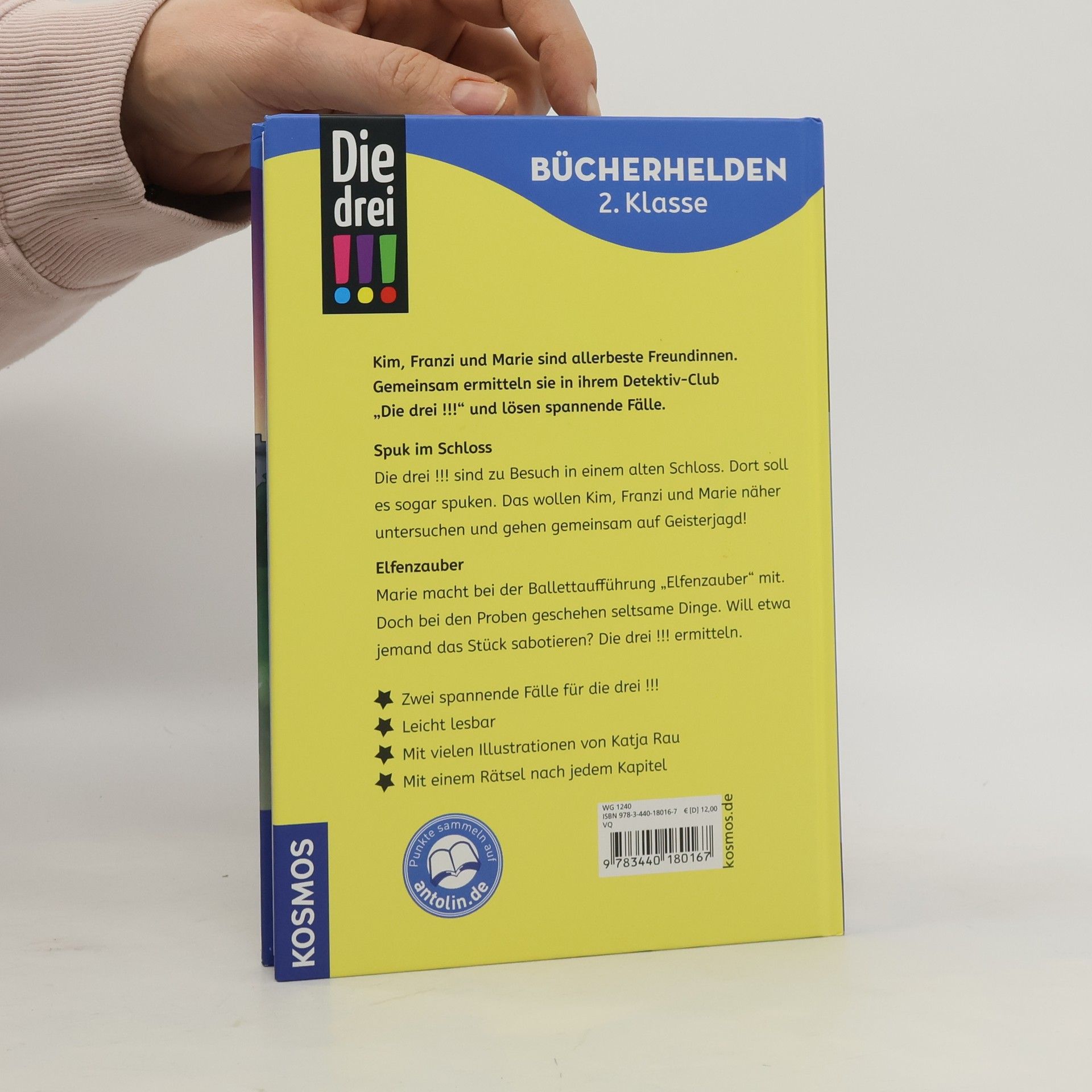 Alles Spuk? Die drei !!! besuchen ihre Freundin Hanna und sind begeistert. Im alten Schloss gibt es so viel zu entdecken! Abends soll es hier sogar spuken. Tatsächlich schweben unheimliche Lichter durch die Dunkelheit. Kim, Marie und Franzi lassen sich davon nicht beeindrucken. Mutig gehen sie auf Geisterjagd. Bald ist es so weit! In Maries Ballettschule freuen sich die Kinder auf ihren großen Auftritt. Dann verschwinden Kostüme und die Schränke werden durchwühlt. Was hat eine Elfe damit zu tun? Die drei !!! finden es heraus. Zwei Bände mit jeweils acht Kapiteln. Lesen, mitfiebern und nach jedem Kapitel ein Rätsel lösen.