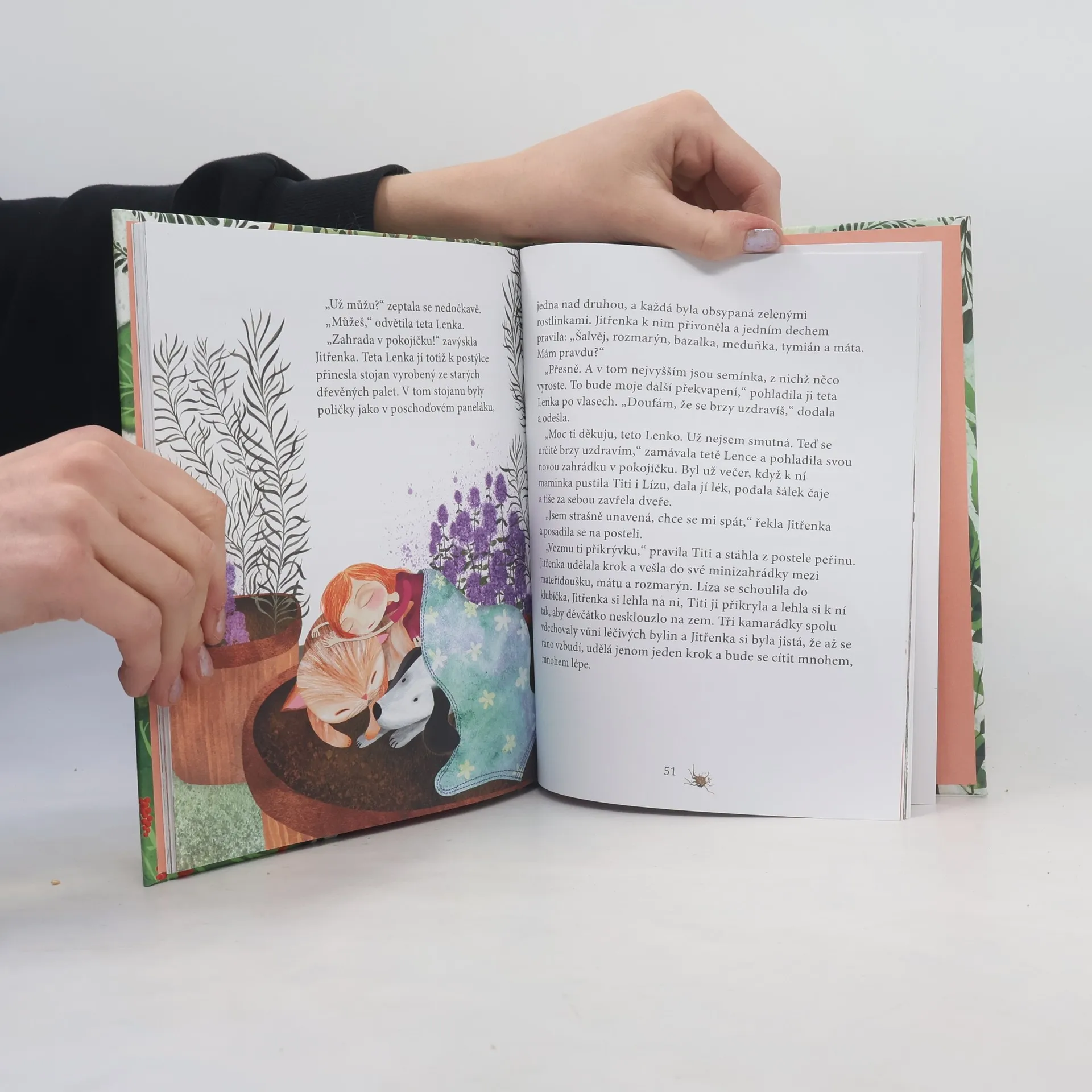 Jitřenčina zahrádka je pro ni a pro její kamarády kočičku Lízu a pejska Titiho to nejkrásnější místo na světě. Celé dny si zde hrají, objevují všechna zákoutí a poznávají její obyvatele: krtečka, ježka, pilné mravenečky nebo malé pavoučky. Pokud se chcete do Jitřenčina království podívat a dozvědět se, jak to bylo s maličkými housátky, protivnou vosou nebo zahrádkou v pokojíčku, otevřete tuto knížku plnou překrásných ilustrací a přeneste se tam…