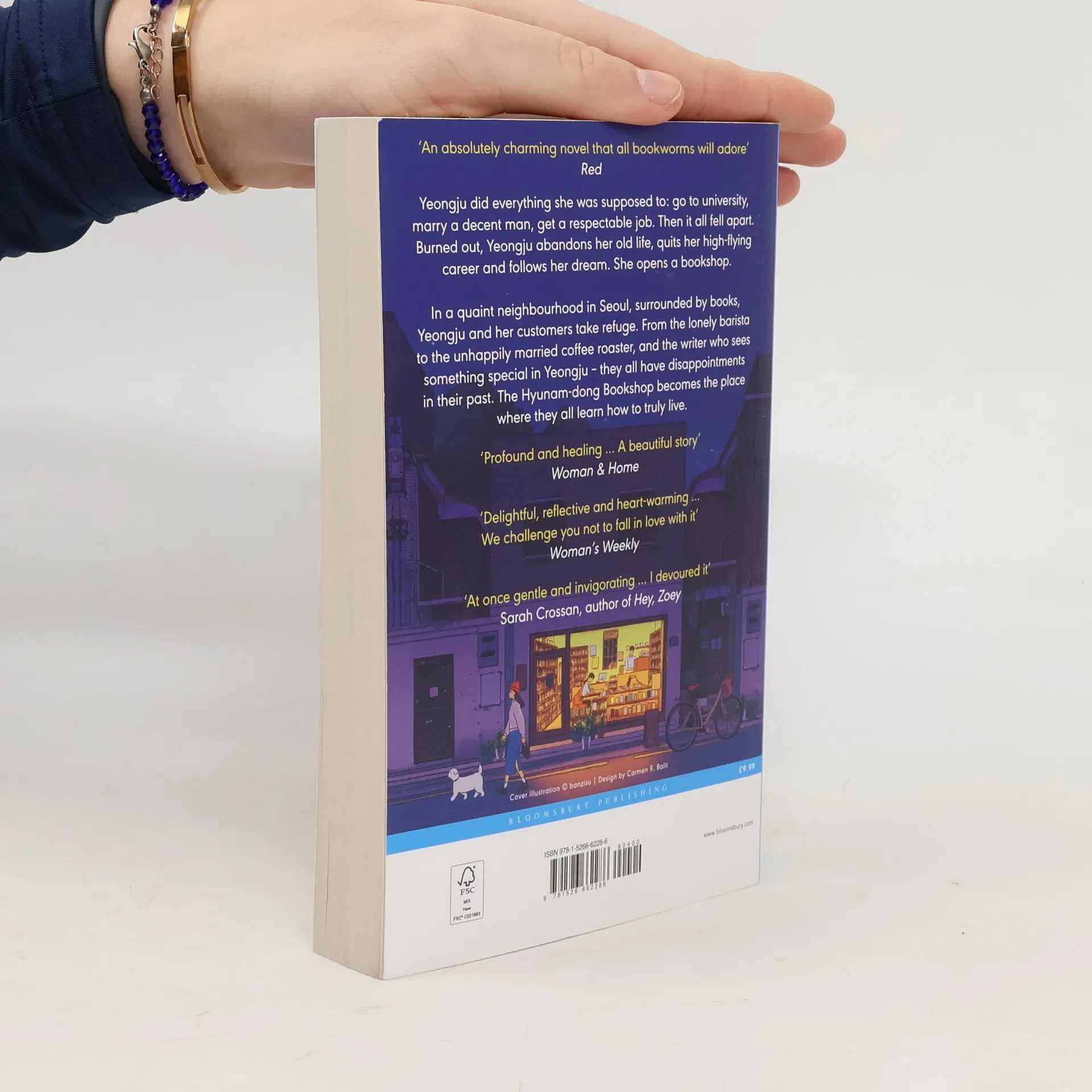 Yeongju is burned out. With her high-­flying career, demanding marriage, and busy life in Seoul, she knows she should feel successful, but all she feels is drained. Yet an abandoned dream nags at her, and in a leap of faith, she leaves her old life behind. After quitting her job and divorcing her husband, Yeongju moves to a small residential neighborhood outside the city, where she opens the Hyunam-dong Bookshop.For the first few months all Yeongju does is cry, but the long hours in the shop also give her time to mull over what makes a good bookseller and store. As she starts to read hungrily, host author events, and develop her own bookselling philosophy, she eases into her new setting. Surrounded by friends, writers, and the books that connect them all, she finds her new story as the Hyunam-dong Bookshop transforms into an inviting space for lost souls to rest, heal, and remember it's never too late to scrap the plot and start again.