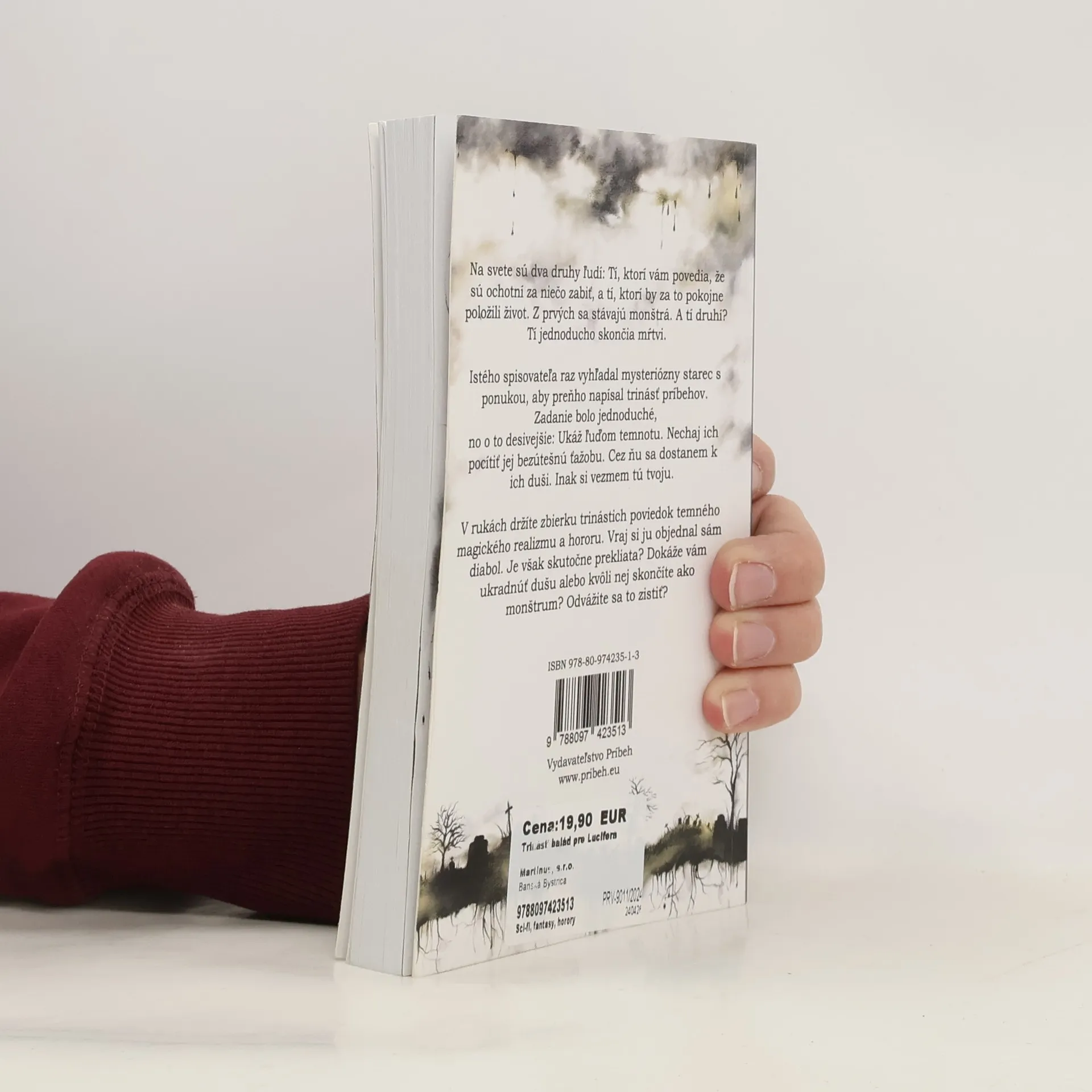 Na svete sú dva druhy ľudí: tí, ktorí vám povedia, že sú ochotní za niečo zabiť, a tí, ktorí by za to niečo pokojne položili život. Z prvých sa stávajú monštrá. A tí druhí? Tí jednoducho skončia mŕtvi. Istého spisovateľa raz vyhľadal mysteriózny starec s ponukou, aby preňho napísal trinásť príbehov. Zadanie bolo jednoduché, no o to desivejšie: „Ukáž ľuďom temnotu. Nechaj ich pocítiť jej bezútešnú ťažobu. Cez ňu sa dostanem k ich duši. Inak si vezmem tú tvoju.“ Túto zbierku trinástich poviedok temného magického realizmu a hororu si vraj objednal sám diabol. Je však skutočne prekliata? Dokáže vám ukradnúť dušu alebo kvôli nej skončíte ako monštrum? Odvážite sa to zistiť? Trinásť balád pre Lucifera bude obsahovať vyše 30 ilustrácií od Beáty Juritkovej. Šikovná umelkyňa vytvorila aj obálku knihy a nedávno ilustrovala Prekliatu zbierku od vydavateľstva Príbeh. Beáta Juritková sa umeniu venuje odmalička, študovala na strednej umeleckej škole, momentálne nastúpila na VŠVU v Bratislave. Má rada horory a temné príbehy, preto si prácu na zbierke užila.