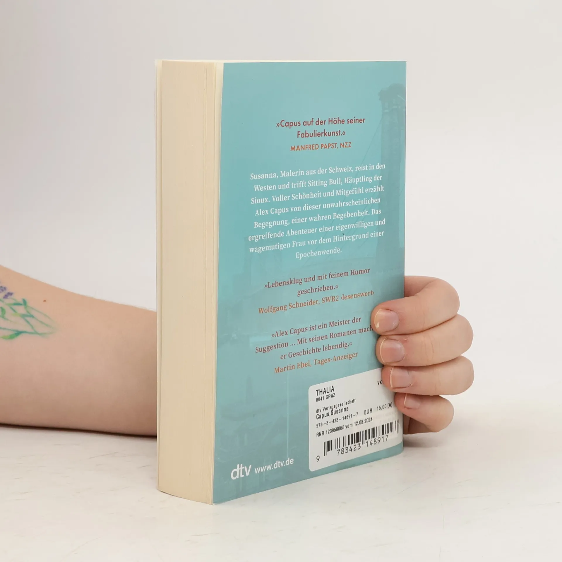»Capus auf der Höhe seiner Fabulierkunst.« Manfred Papst, NZZ Alte Gewissheiten gelten nicht mehr, neue sind noch nicht zu haben. In New York wird die Brooklyn Bridge eröffnet, Edisons Glühbirnen erleuchten die Stadt. Mittendrin Susanna, eine Malerin aus Basel, die mit ihrer Mutter nach Amerika ausgewandert ist. Während Maschinen die Welt erobern, kämpfen im Westen die Ureinwohner ums Überleben. Falsche Propheten versprechen das Paradies, die Kavallerie steht mit entsicherten Gewehren bereit. Mit ihrem Sohn reist Susanna ins Dakota-Territorium. Sie will zu Sitting Bull, um ihn zu warnen. Ein Portrait, das sie von ihm malt, hängt heute im State Museum North Dakotas. Das ergreifende Abenteuer einer eigenwilligen und wagemutigen Frau, voller Schönheit und Mitgefühl erzählt.