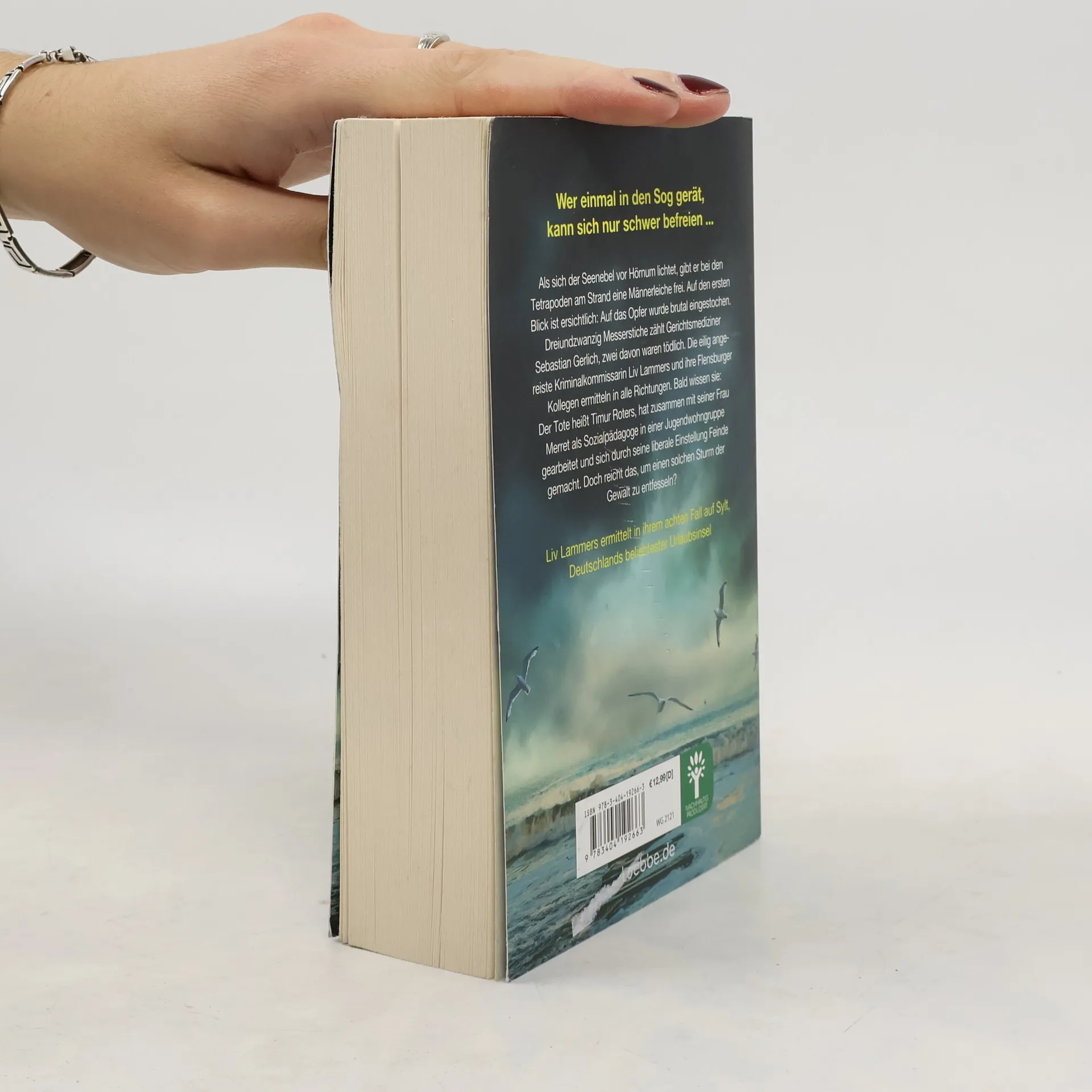 Wer einmal in den Sog gerät, kann sich nur schwer befreien ... Als sich der Seenebel vor Hörnum lichtet, gibt er bei den Tetrapoden am Strand eine Männerleiche frei. Auf den ersten Blick ist ersichtlich: Auf das Opfer wurde brutal eingestochen. Dreiundzwanzig Messerstiche zählt Gerichtsmediziner Sebastian Gerlich, zwei davon waren tödlich. Die eilig angereiste Kriminalkommissarin Liv Lammers und ihre Flensburger Kollegen ermitteln in alle Richtungen. Bald wissen sie: Der Tote heißt Timur Roters, hat zusammen mit seiner Frau Merret als Sozialpädagoge in einer Jugendwohngruppe gearbeitet und sich durch seine liberale Einstellung Feinde gemacht. Doch reicht das, um einen solchen Sturm der Gewalt zu entfesseln? Liv Lammers ermittelt in ihrem achten Fall auf Sylt, Deutschlands beliebtester Urlaubsinsel