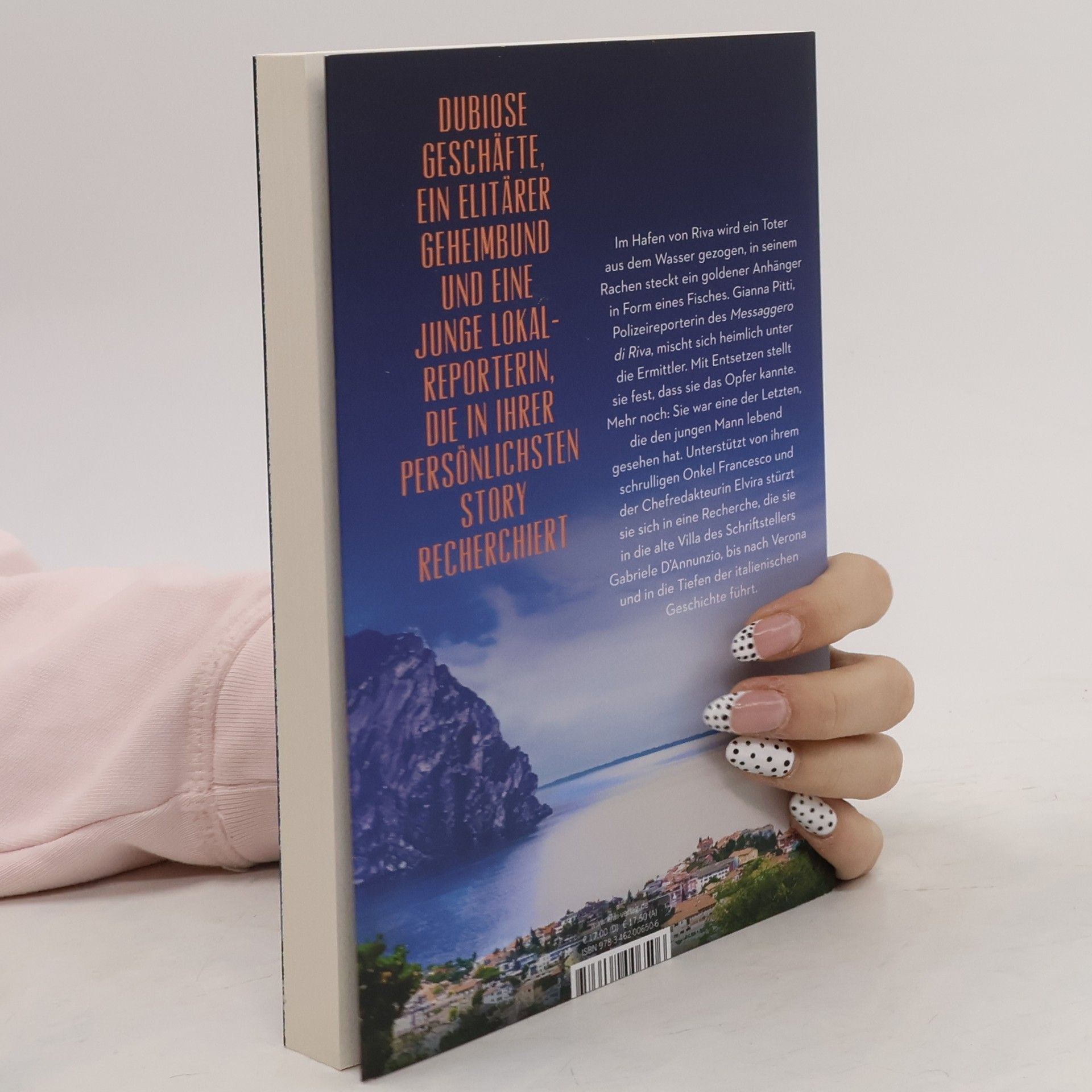 Ein Fall für Gianna PittiErmittlungen am Gardasee, Band 1Dubiose Geschäfte, ein elitärer Geheimbund und eine junge Lokalreporterin, die in ihrer persönlichsten Story »Was der See birgt« ist der fulminante Auftakt einer neuen Reihe und ein extrem spannendes Lesevergnügen.Am Ufer des Gardasees blinken Blaulichter. Im Jachtafen von Riva wurde ein Toter gefunden. Gianna Pitti, Polizeireporterin der Lokalzeitung und der wohl größte Vasco-Rossi-Fan auf diesem Planeten, ist immer zur Stelle, wenn am See etwas passiert. Mit Entsetzen stellt sie fest, dass sie das Opfer kannte. Mehr Sie war eine der Letzten, die den jungen Mann lebend gesehen hat. Während die Polizei im Dunkeln tappt, beginnt die Journalistin zu recherchieren. Unterstützung bekommt sie von ihrem schrulligen Onkel Francesco und der Chefredakteurin Elvira. Die Spuren führen sie zur ehemaligen Residenz des Schriftstellers Gabriele D'Annunzio, in der es nicht mit rechten Dingen zuzugehen scheint. Auf dem prunkvollen Anwesen, das heute ein Museum ist, werden geheimnisvolle Feste ausgerichtet. Je tiefer die drei graben, desto mehr Rätsel tauchen Was hat es mit dem goldenen Anhänger auf sich, der im Rachen der Leiche steckte? Und wie hängt das alles mit Giannas Vater zusammen, dem legendären Investigativjournalisten, der vor einem Jahr spurlos verschwand? Die Suche nach Antworten bringt das Trio an seine Grenzen.