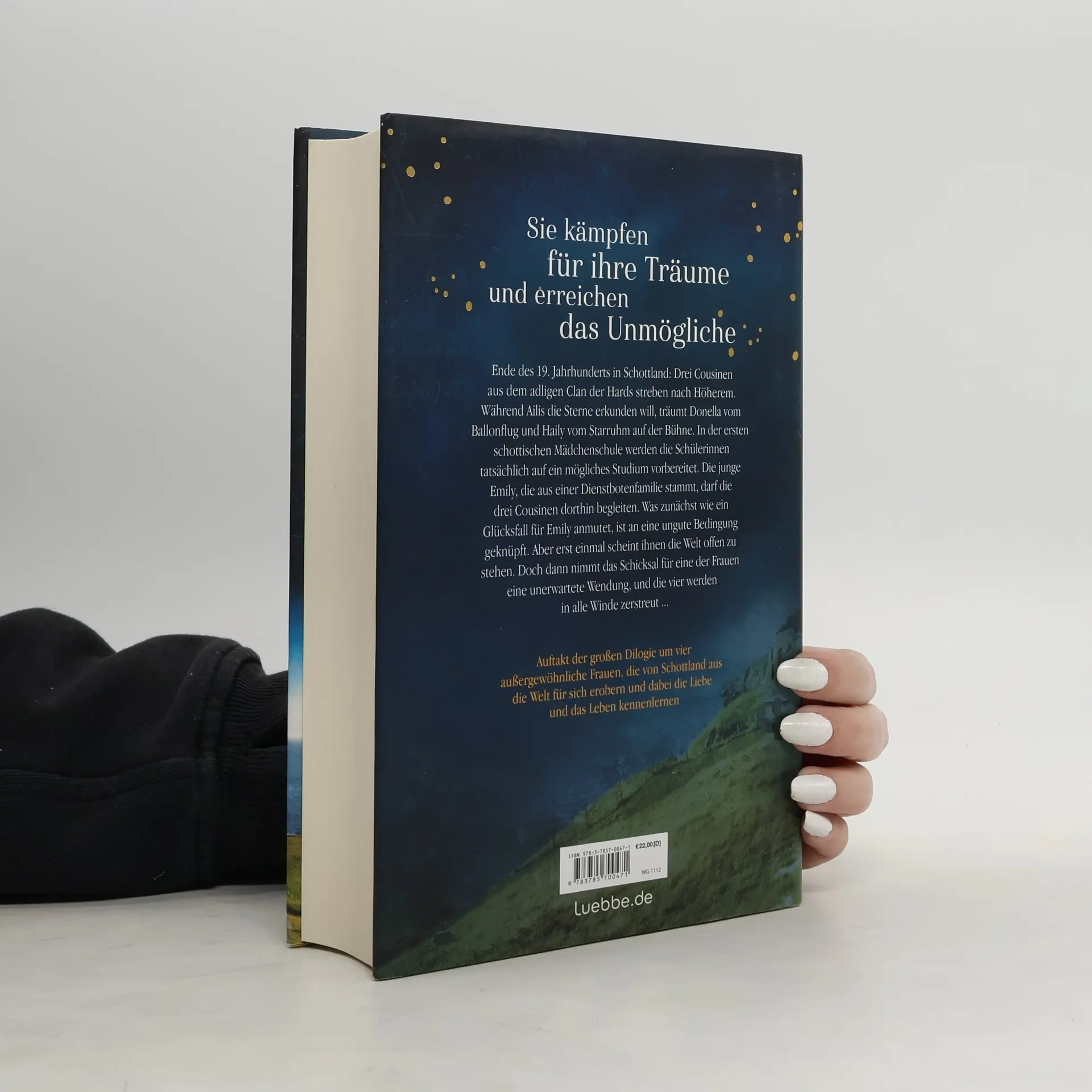 Ende des 19. Jahrhunderts in Drei Cousinen aus dem adligen Clan der Hards streben nach Höherem. Während Ailis die Sterne erkunden will, träumt Donella vom Ballonflug und Haily vom Starruhm auf der Bühne. In der ersten schottischen Mädchenschule werden die Schülerinnen tatsächlich auf ein mögliches Studium vorbereitet. Die junge Emily, die aus einer Dienstbotenfamilie stammt, darf die drei Cousinen dorthin begleiten. Was zunächst wie ein Glücksfall für Emily anmutet, ist an eine ungute Bedingung geknüpft. Aber erst einmal scheint ihnen die Welt offen zu stehen. Doch dann nimmt das Schicksal für eine der Frauen eine unerwartete Wendung, und die vier werden in alle Winde zerstreut ...Auftakt der großen Dilogie um vier außergewöhnliche Frauen, die von Schottland aus die Welt für sich erobern und dabei die Liebe und das Leben kennenlernen
