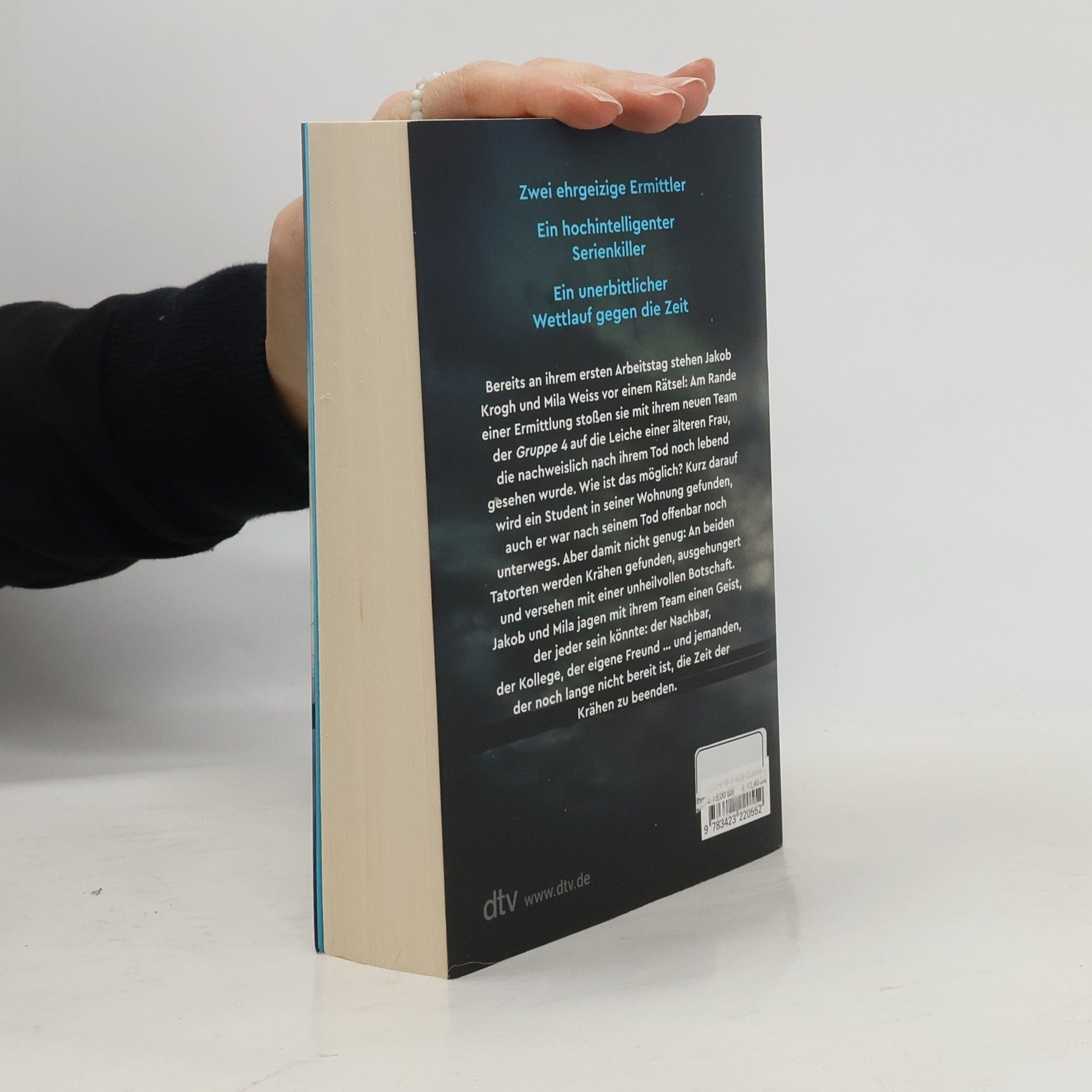 Er spielt die Rolle deines Lebens Zwei ehrgeizige Ermittler, ein hochintelligenter Serienkiller – ein unerbittlicher Wettkampf gegen die Zeit. Bereits am ersten Arbeitstag steht das Ermittlerduo Jakob Krogh und Mila Weiss vor einem Rätsel. Am Rande einer Ermittlung stoßen sie auf die Leiche einer älteren Frau, die nachweislich nach ihrem Tod noch lebend gesehen wurde. Wie ist das möglich? Kurz darauf wird ein junger Student in seiner Wohnung gefunden, auch er war nach seinem Tod offenbar noch an der Uni. Aber damit nicht genug: An beiden Tatorten werden Krähen gefunden, ausgehungert und versehen mit einer unheilvollen Botschaft. Jakob und Mila jagen mit dem Team der neuen Gruppe 4 einen Geist, der jeder sein könnte: der Nachbar, der Kollege, der eigene Freund … und jemanden, der noch lange nicht bereit ist, die Zeit der Krähen zu beenden. Benjamin Cors begibt sich auf neues Terrain: Härter, blutiger, spannender – ein atemberaubender Thriller des Bestseller-Autors