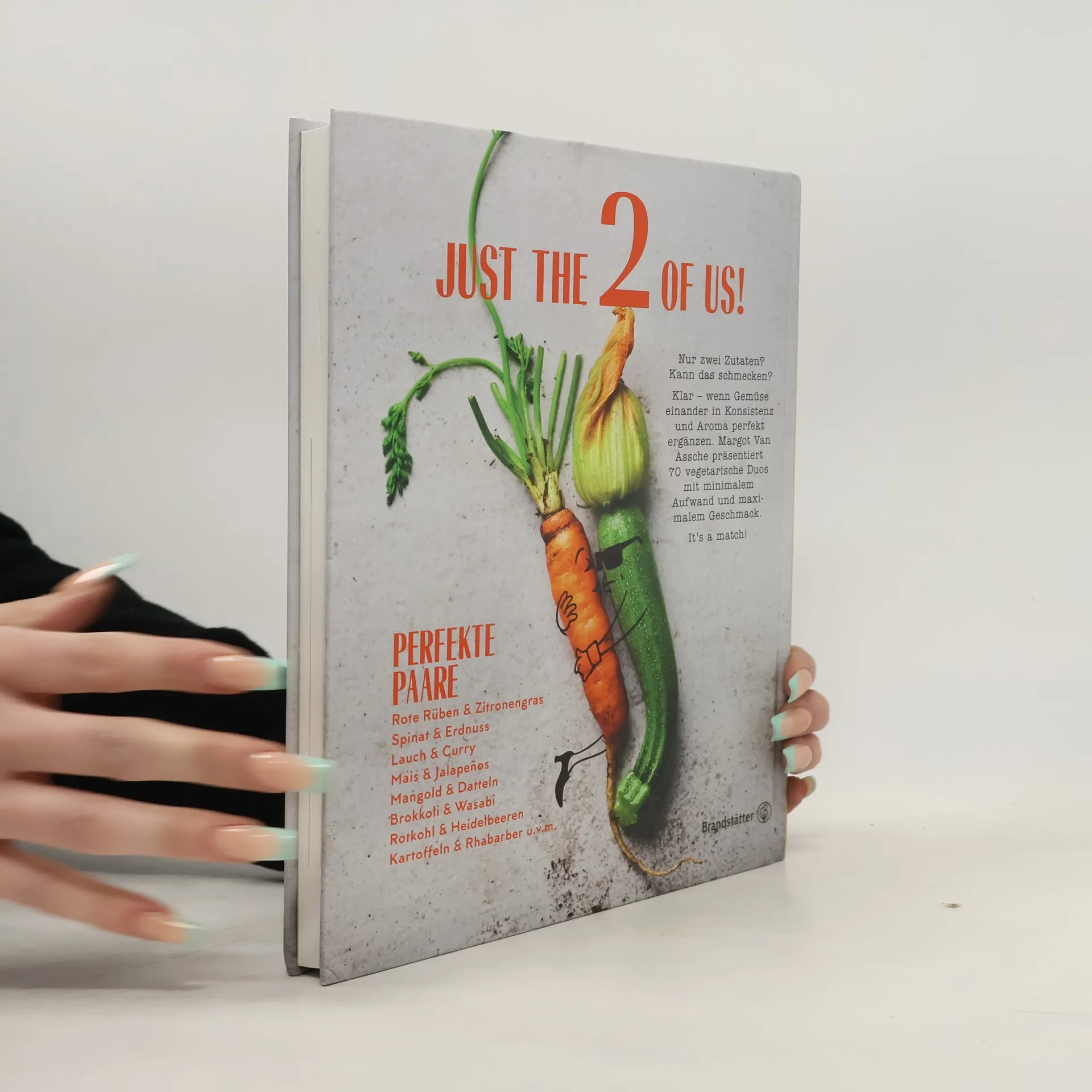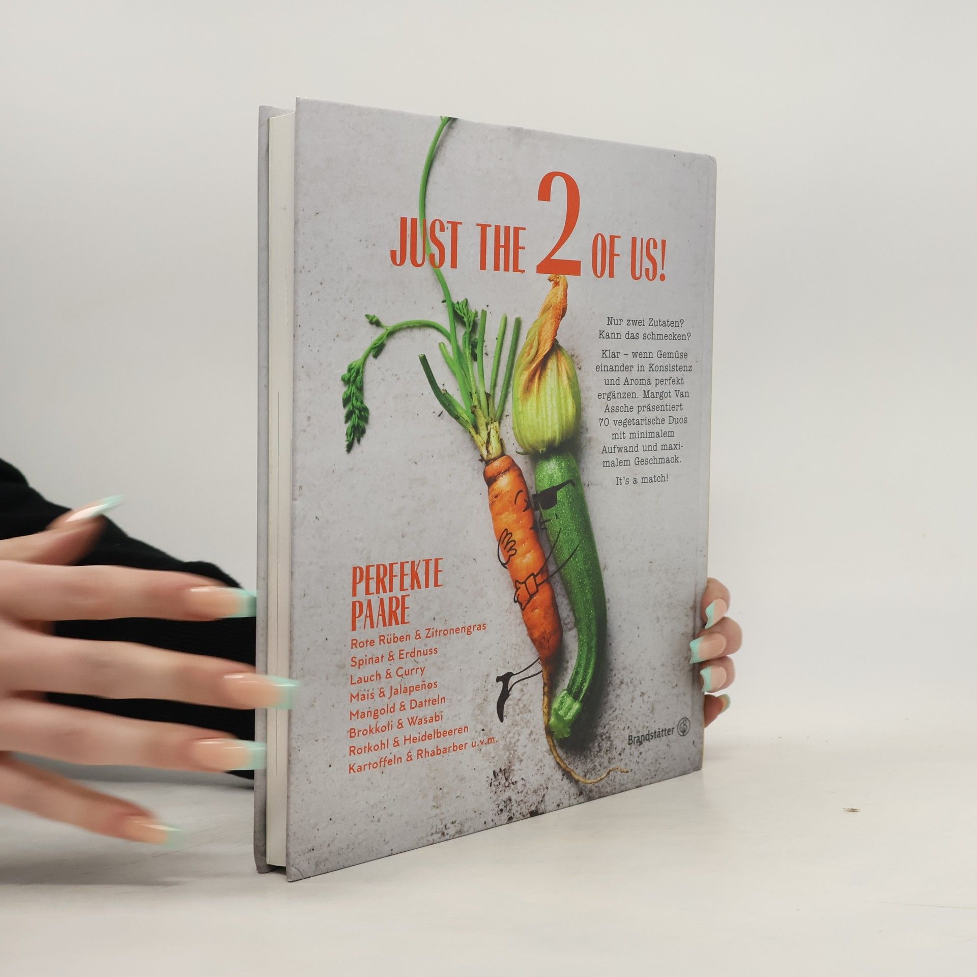 Nur zwei Zutaten? Kann das schmecken? Klar – wenn Gemüse sich das Ja- Wort gibt! Margot Van Assche präsentiert 70 kulinarische Liebesaffären, von Aubergine & Miso über Kohl & Kichererbsen bis Zucchini & Oliven. Viele davon ungewohnt und überraschend. Alle sensationell gut.Die passionierte Feinschmeckerin kombiniert ihre vegetarischen Duos so, dass sich Konsistenz und Aromen perfekt ergänzen. Dahinter stehen jahrzehntelange Erfahrung als (Familien-)Köchin, viel Lust am Ausprobieren und eine große Portion Kreativität. Raffiniert Neben Basics wie Gewürzen und Öl bringen zwei Zu- taten mit minimalem Aufwand maximalen Geschmack. Ein handliches Kochbuch mit noch handlicheren Gemüse-Rezepten, die garantiert gelingen und schmecken. It's a match!