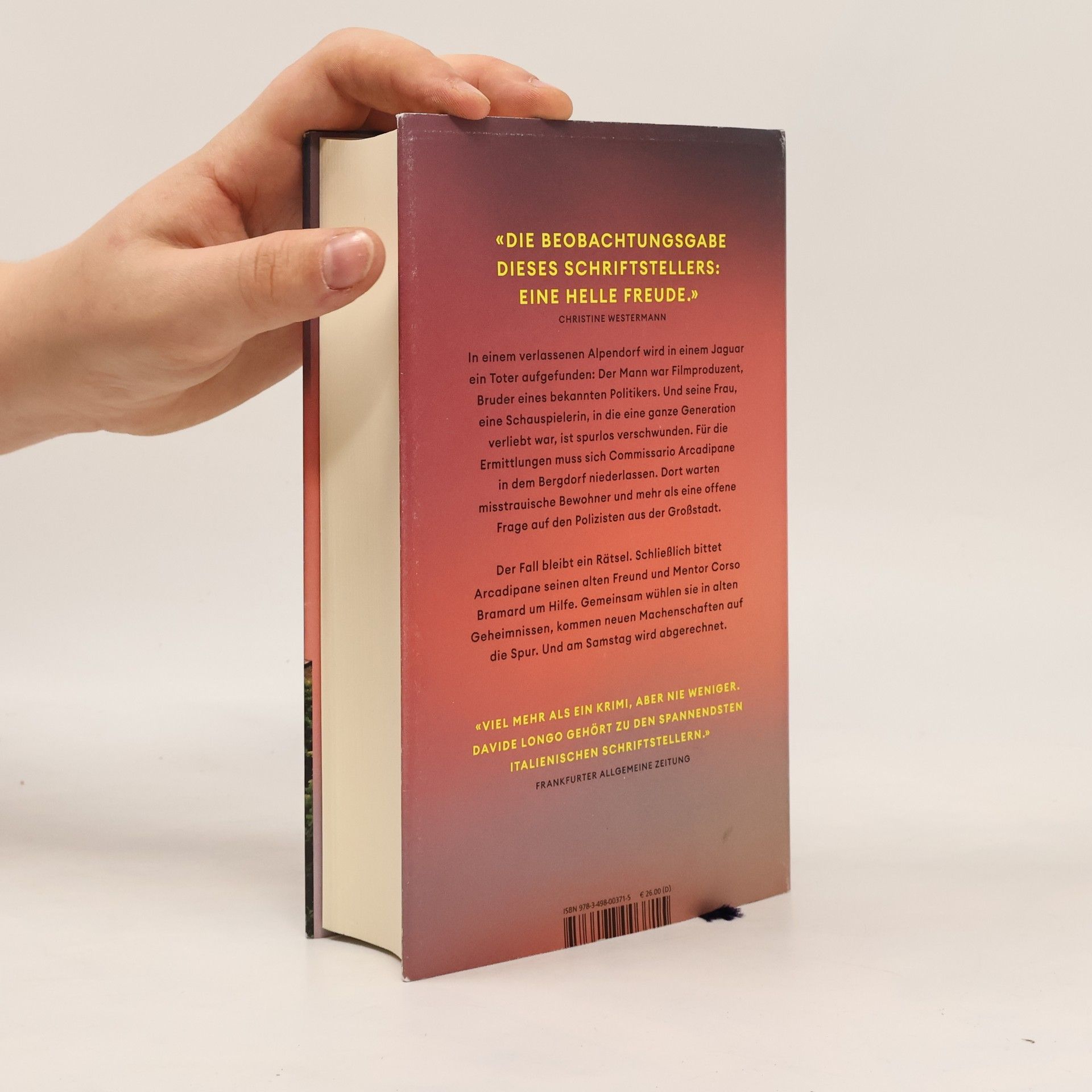 Ein atmosphärischer Kriminalroman, der zwischen einem einsamen piemontesischen Bergdorf und der lärmenden Kino- und Politikmetropole Rom «Longo ist einer der fabelhaftesten Schriftsteller Italiens.» Die Welt In einem verlassenen Alpendorf wird ein Filmproduzent und Bruder eines ehemaligen Democrazia-Cristiana-Politikers tot in seinem Jaguar aufgefunden. Seine Frau, eine frühere Schauspielerin, in die eine ganze Generation verliebt war, ist spurlos verschwunden. Für die Ermittlungen muss sich Commissario Arcadipane, eigentlich Turiner, in dem einsamen Bergdorf, das aus einer Handvoll Häuser besteht, niederlassen. Dort warten misstrauische Bewohner und ein Rätsel auf ihn, das ihm Kopfzerbrechen bereitet. Ein zu komplizierter Fall, um nicht seinen alten Freund und Mentor Corso Bramard um Hilfe zu bitten, sowie die ebenso undisziplinierte wie unverzichtbare Isa Mancini. Beide befinden sich gerade in einer schwierigen Phase ihres Lebens. Möchten sie gemeinsam die Wahrheit ans Licht bringen, wird es nötig sein, in alten Geheimnissen und neuen Machenschaften zu wühlen und ein komplexes Geflecht aus politischen Intrigen zu entwirren. Und am Samstag wird abgerechnet.«Viel mehr als ein Krimi, aber nie weniger. Davide Longo gehört zu den spannendsten italienischen Schriftstellern.» FAZ
