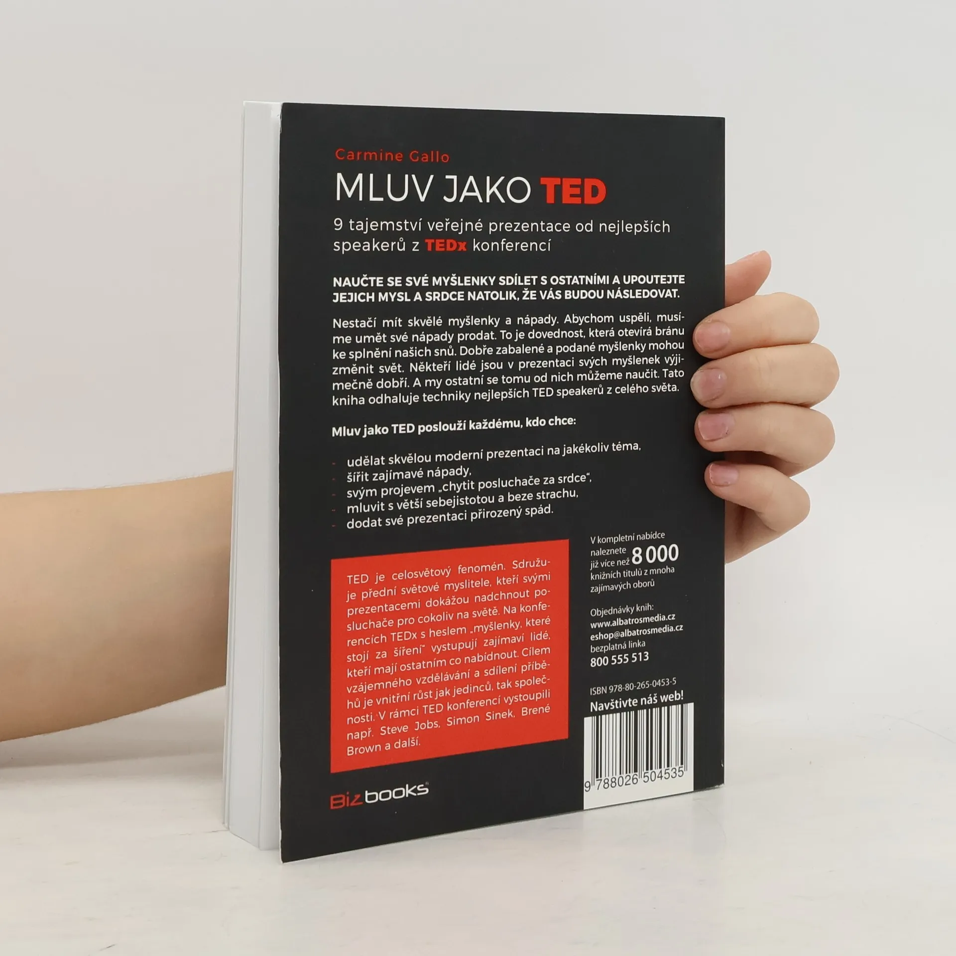 Chcete, aby vás ostatní poslouchali? Abyste zaujali, musíte své nápady umět prodat. To je dovednost, která otevírá bránu ke splnění vašich snů. Dobře formulované a podané myšlenky mohou změnit svět. Tato kniha odhaluje techniky nejlepších TED speakerů z celé- ho světa. Učte se od těch nejlepších! I vy to můžete dokázat.