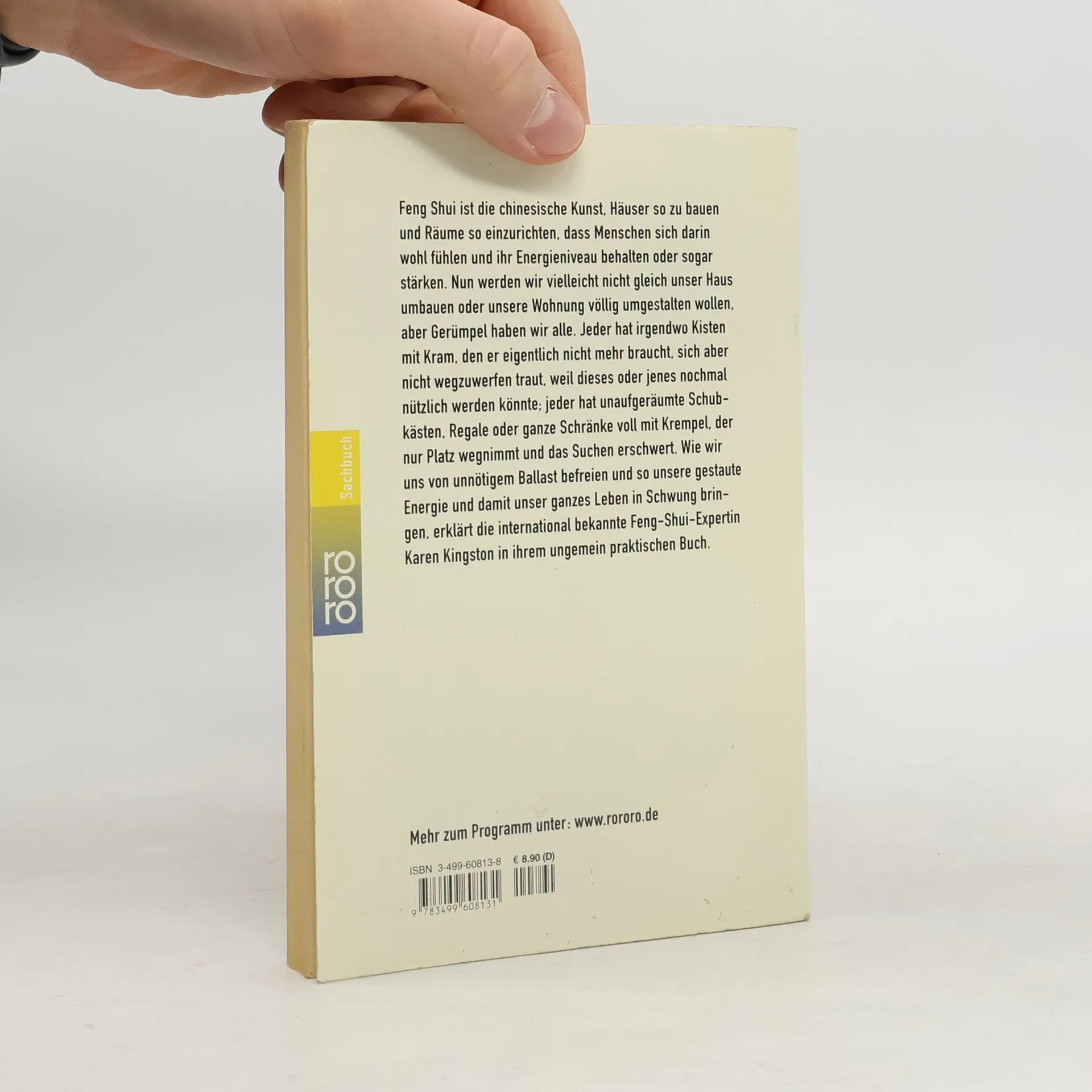 Feng Shui ist die chinesische Kunst, Häuser so zu bauen und Räume so einzurichten, dass Menchen sich darin wohl fühlen und ihr Energieniveau behalten oder sogar stärken. Nun werden wir vielleicht nicht gleich unser Haus umbauen oder unsere Wohnung völlig umgestalten wollen, aber Gerümpel haben wir alle. Jeder hat irgendwo Kisten mit Kram, den er eigentlich nicht mehr braucht, sich aber nicht wegzuwerfen traut, weil dieses oder jenes nochmal nützlich werden könnte; jeder hat unaufgeräumte Schubkästen, Regale oder ganze Schränke voll mit Krempel, der nur Platz wegnimmt und das Suchen erschwert. Wie wir uns von unnötigem Ballast befreien und so unsere gestaute Energie und damit unser ganzes Leben in Schwung bringen, erklärt die international bekannte Feng-Shui-Expertin Karen Kingston in ihrem ungemein praktischen Buch.