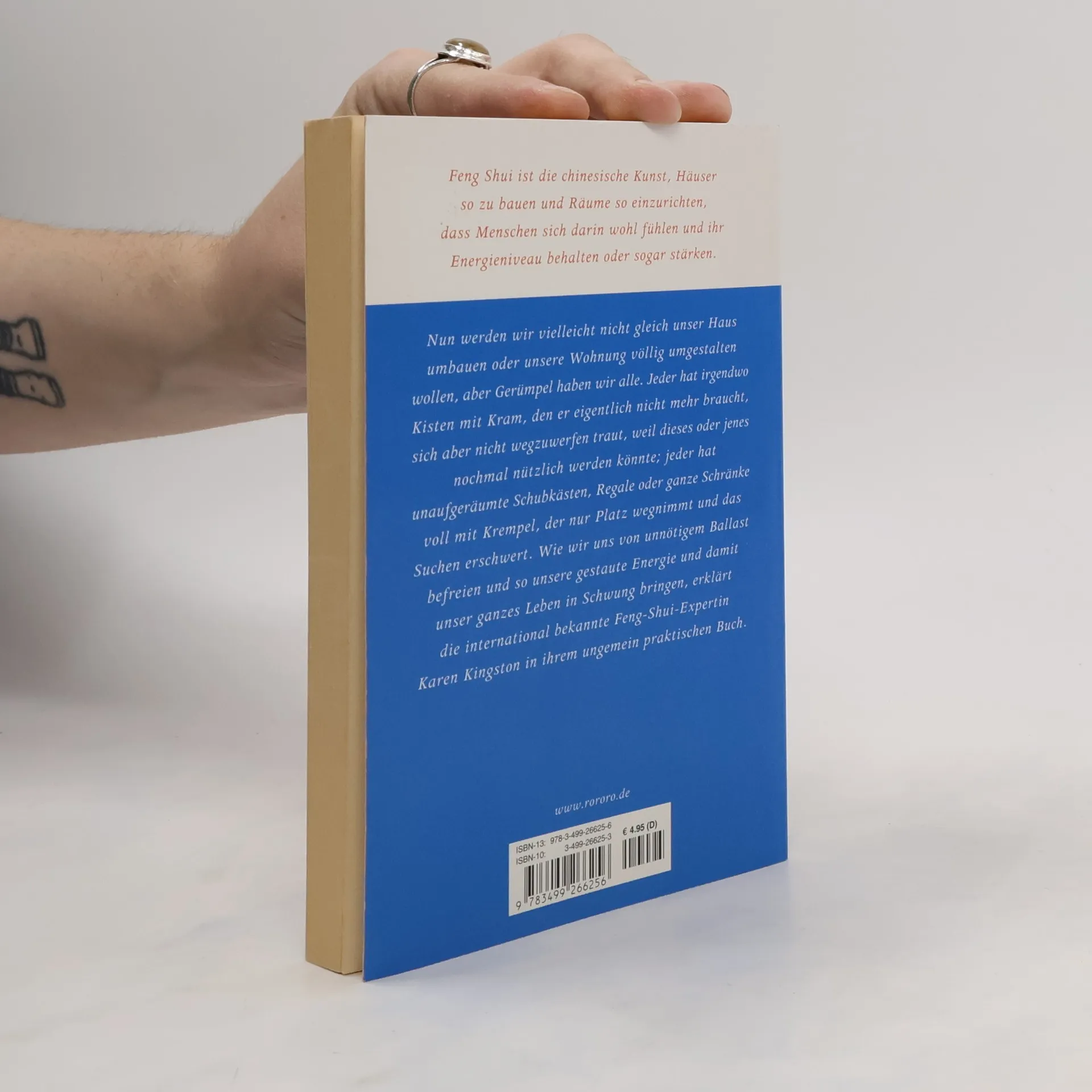 Karen Kingston gilt als weltweit führende Expertin in Sachen «Space Clearing» – der Feng-Shui-Kunst des Reinigens und Klärens von Energieflüssen in Gebäuden. Ihre Bücher und Workshops haben das Verständnis einer ganzen Generation geprägt, was Gerümpel und Raumenergie betrifft. Seit ihr Buch «Feng Shui gegen das Gerümpel des Alltags» 1998 erstmals erschien, wurde es umgehend zu einem Welt-Bestseller. Es ist heute ein Klassiker auf dem Gebiet und hat nicht bloß Dutzende ähnlicher Bücher inspiriert, sondern auch Zehntausende von Artikeln und Blogs sowie eine Reihe von Fernseh- und Radiosendungen in zahlreichen Ländern. Karen Kingston veranstaltet Workshops, berät Privatleute, bildet Berater aus und ist eineaktive Bloggerin mit einer großen internationalen Anhängerschar. Die gebürtige Engländerin lebte bis 2010 zwanzig Jahre lang auf Bali. Inzwischen ist sie, gemeinsam mit ihrem australischen Ehemann Richard Sebok, der ebenfalls Space Clearing und Entrümpelung lehrt und praktiziert, wieder nach England zurückgekehrt. www. spaceclearing. com