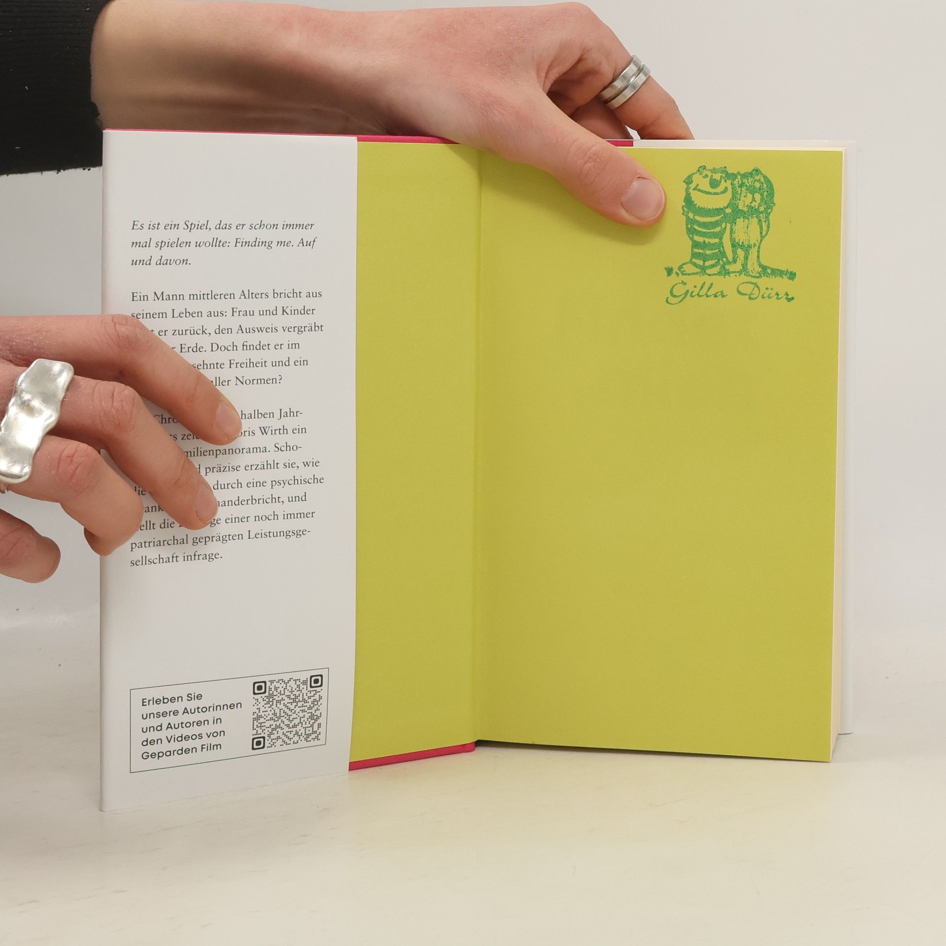 Krawatte, Dienstgrad, Feierabendbier: Es könnte immer so weiter gehen. Doch Erwin, Mittfünfziger, Familienvater, bricht aus. Einst ein Freigeist, stürzt er sich nach Jahrzehnten wieder in ein wildes, ungebundenes Abenteuerleben. Er taucht unter, flieht in die Natur, gilt bald als vermisst. Findet mich zeichnet das Psychogramm eines Mannes, dem letztlich eine Psychose diagnostiziert wird und dessen Familie ihn nicht mehr wiedererkennt. Doris Wirth erzählt diese Geschichte als Langzeitporträt, das wechselnde Perspektiven einnimmt; sie blendet zurück in die Vergangenheit von Erwins Ehe, in die sozialen Umstände der Familiengründung und die Reaktionen der in diesen Verhältnissen aufwachsenden Kinder. Findet mich ist ein packendes Romandebüt, das nach den Auswirkungen der Selbstdefinition über Leistung und Arbeit fragt und Zwänge und Begrenzungen in unserer Gesellschaft aufzeigt.