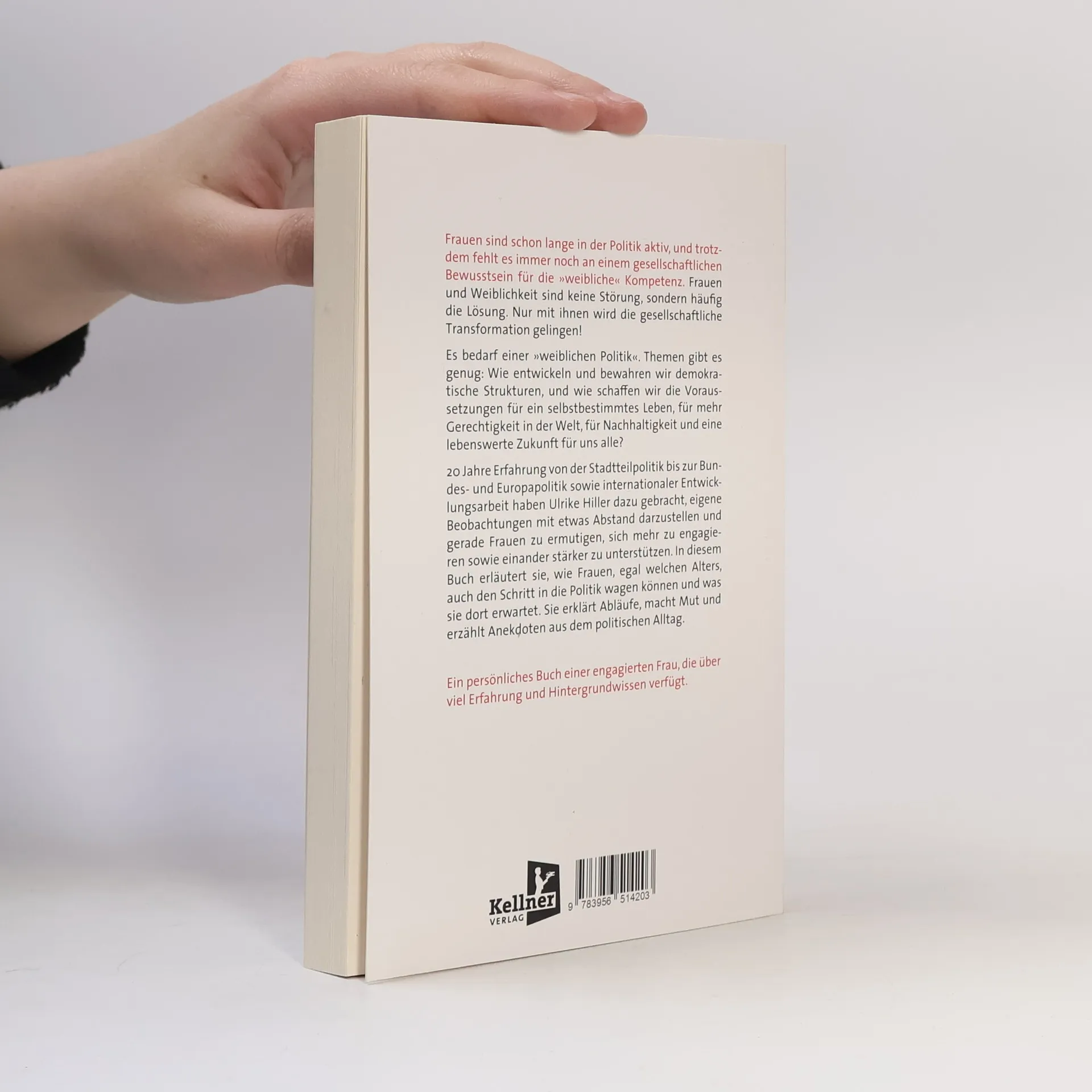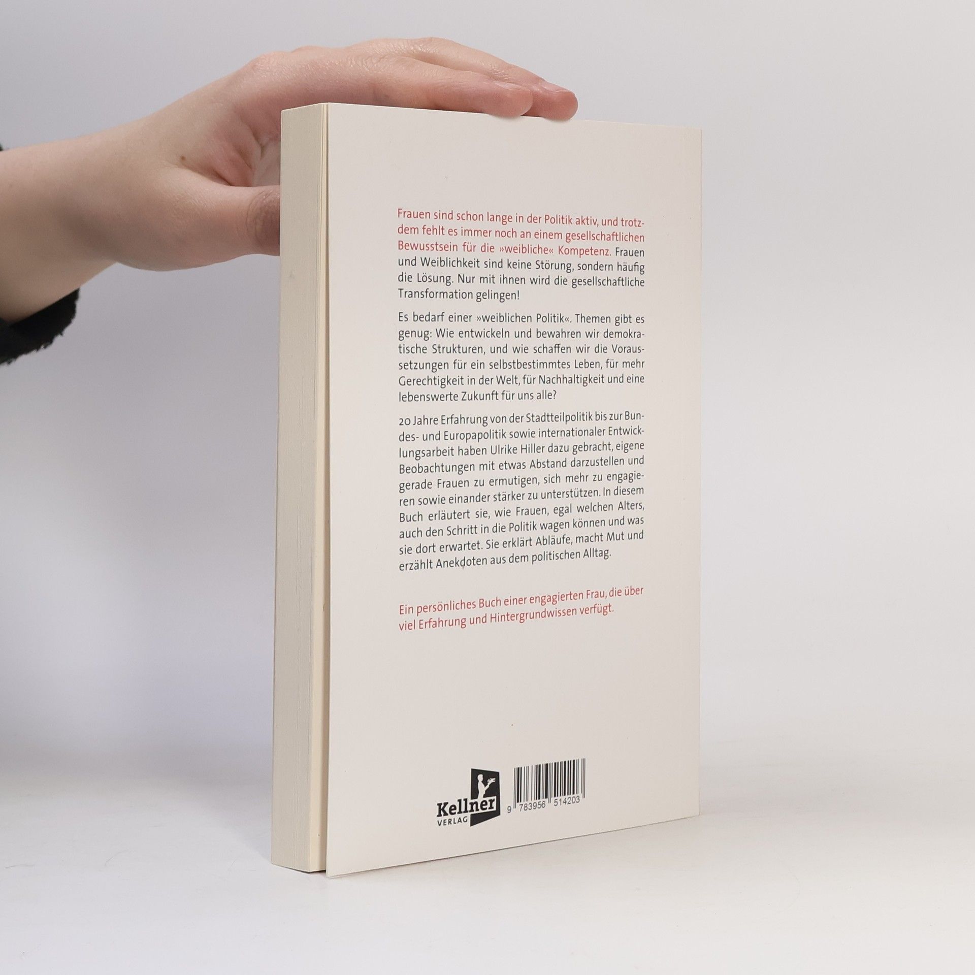 Mehr Frauen in der Politik – diese Herzensangelegenheit möchte Ulrike Hiller mit diesem Buch Realität werden zu lassen. Über 20 Jahre war sie mit Leidenschaft für die beziehungsweise in der Politik unterwegs, erst im Stadtteil, dann im Stadt- und Landesparlament (der bremischen Bürgerschaft) und schließlich in der Landesregierung. Sie war verantwortlich für Bundes- und Europaangelegenheiten, war Mitglied im Kongress der lokalen und regionalen Gebietskörperschaften und im Ausschuss der Regionen, später Beiratssprecherin, Beirats-Fraktionsvorsitzende, Ortsvereinsvorsitzende, Delegierte, Staatsrätin, Bevollmächtigte, Schriftführerin, Koordinatoren und Vorsitzende der Deutschen Delegation. Hiller erläutert, wie Frauen den Schritt in die Politik wagen können und was sie dort erwartet. Sie erläutert die Abläufe, macht Mut und erzählt Anekdoten aus dem politischen Alltag. Nicht wissenschaftlich, sondern unterhaltsam schafft sie in diesem Buch eine Verstehensebene sowie eine Nähe, die inspiriert und den Frauen in aller Welt zuruft: Wagt es! Ein persönliches Buch einer engagierten Frau, die über viel Erfahrung und Hintergrundwissen verfügt.