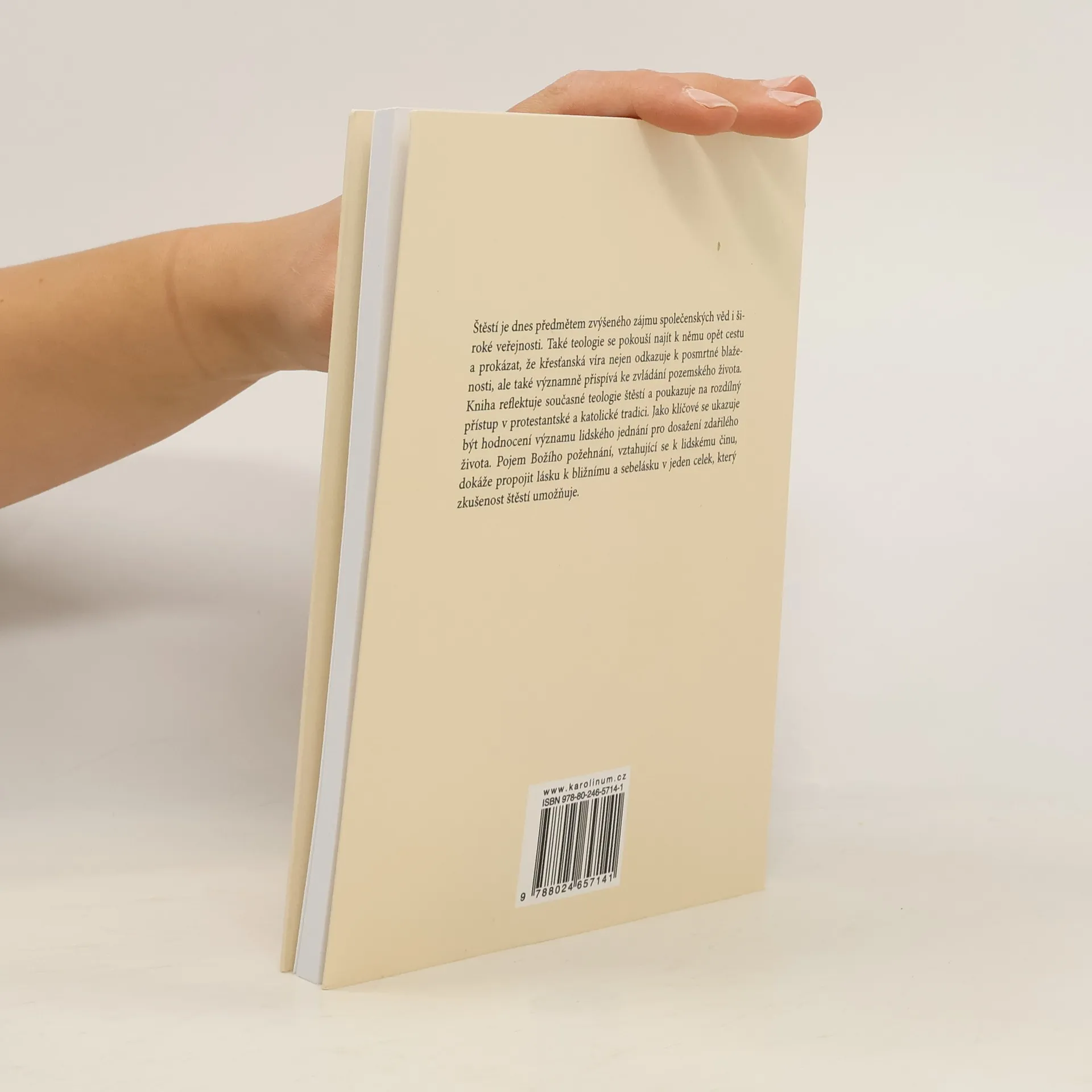 Štěstí je dnes předmětem zvýšeného zájmu společenských věd i široké veřejnosti. Také teologie se pokouší najít k němu opět cestu a prokázat, že křesťanská víra nejen odkazuje k posmrtné blaženosti, ale také významně přispívá ke zvládání pozemského života. Kniha reflektuje současné teologie štěstí a poukazuje na rozdílný přístup v protestantské a katolické tradici. Jako klíčové se ukazuje být hodnocení významu lidského jednání pro dosažení zdařilého života. Pojem Božího požehnání, vztahující se k lidskému činu, dokáže propojit lásku k bližnímu a sebelásku v jeden celek, který zkušenost štěstí umožňuje.