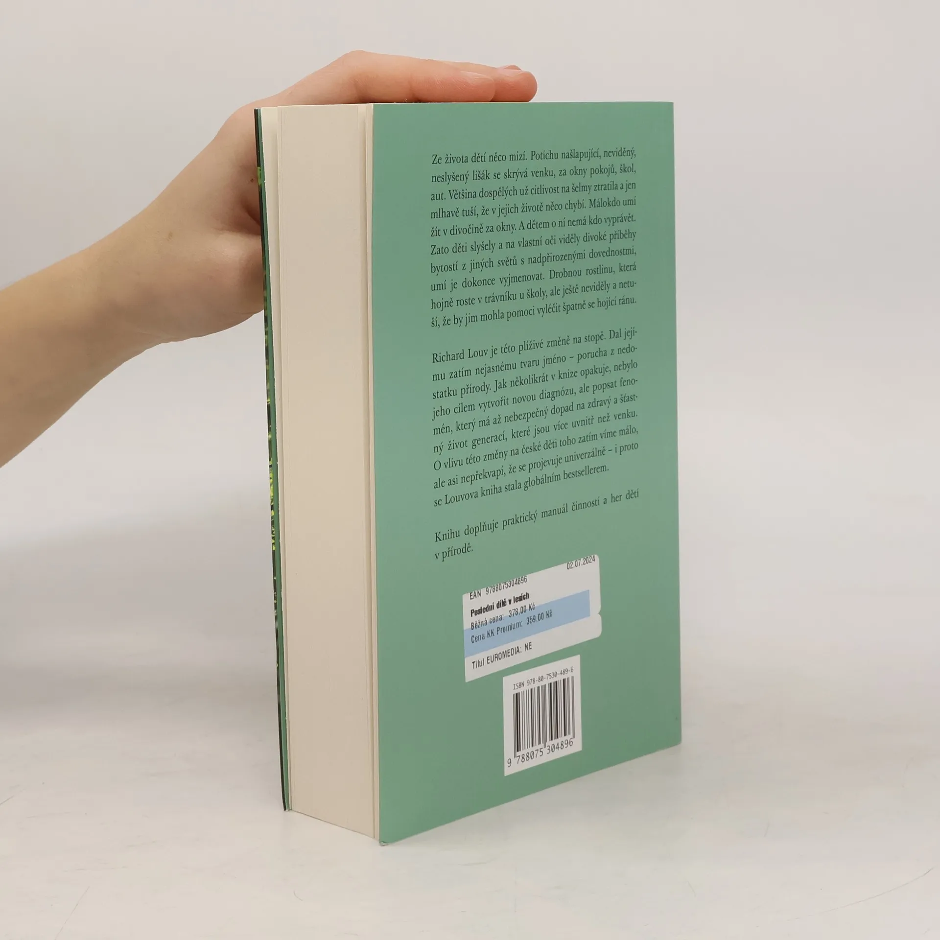 Ze života dětí něco mizí. Potichu našlapující, neviděný, neslyšený lišák se skrývá venku, za okny pokojů, škol, aut. Většina dospělých už citlivost na šelmy ztratila a jen mlhavě tuší, že v jejich životě něco chybí. Málokdo umí žít v divočině za okny. A dětem o ní nemá kdo vyprávět. Zato děti slyšely a na vlastní oči viděly divoké příběhy bytostí z jiných světů s nadpřirozenými dovednostmi, umí je dokonce vyjmenovat. Drobnou rostlinu, která hojně roste v trávníku u školy, ale ještě neviděly a netuší, že by jim mohla pomoci vyléčit špatně se hojící ránu. Richard Louv je této plíživé změně na stopě. Dal jejímu zatím nejasnému tvaru jméno: porucha z nedostatku přírody. Jak několikrát v knize opakuje, nebylo jeho cílem vytvořit novou diagnózu, ale popsat fenomén, který má až nebezpečně mnoho souvislostí se zdravým a šťastným životem generací, které jsou více uvnitř než venku. O dopadech této změny na české děti toho zatím víme málo, ale asi nepřekvapí, že se projevují univerzálně - i proto se Louvova kniha stala globálním bestsellerem. Knihu doplňuje praktický manuál činností a her dětí v přírodě.
