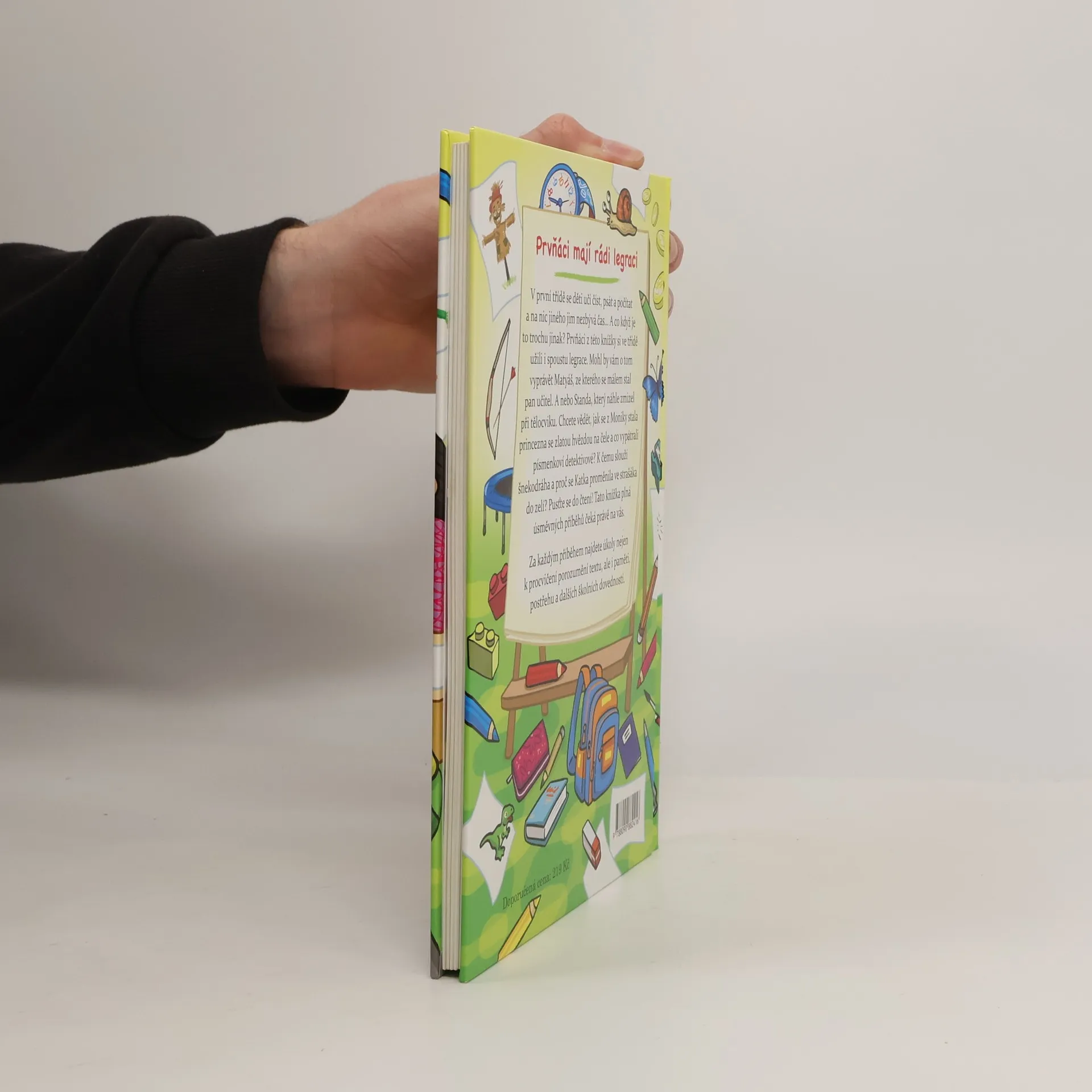 V první třídě se děti učí číst, psát a počítat a na nic jiného jim nezbývá čas... A co když je to trochu jinak? Prvňáci z této knížky si ve třídě užili i spoustu legrace. Mohl by vám o tom vyprávět Matyáš, ze kterého se málem stal pan učitel. A nebo Standa, který náhle zmizel při tělocviku. Chcete vědět, jak se z Moniky stala princezna se zlatou hvězdou na čele a co vypátrali písmenkoví detektivové? K čemu slouží šnekodráha a proč se Katka proměnila ve strašáka do zelí? Pusťte se do čtení! Tato knížka plná úsměvných příběhů čeká právě na vás. Za každým příběhem najdete úkoly nejen k procvičení porozumění textu, ale i paměti, postřehu a dalších školních dovedností.