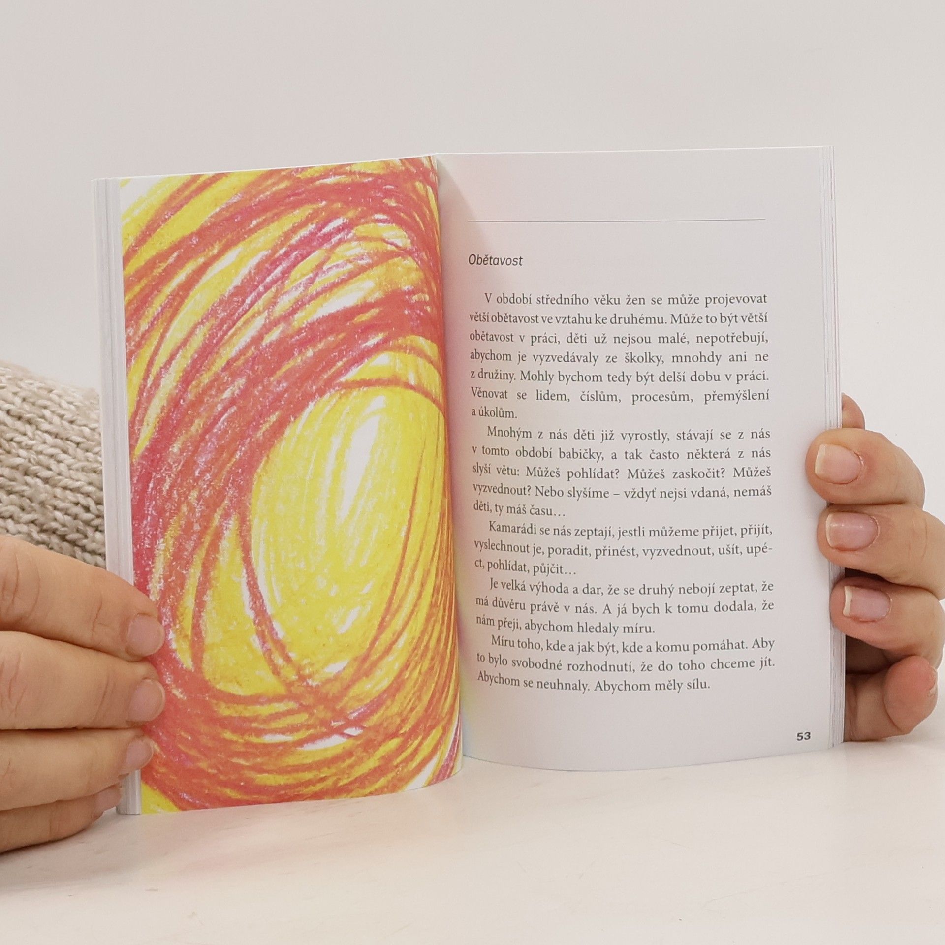 Kniha Žena ve středním věku popisuje období ženy od 45 do 64 let, od velmi produktivního věku po období, kdy žena ve většině případů odchází do důchodu. Je to období, kdy je vhodné zamyslet se nad vztahy s druhými lidmi, s mužem, se širší rodinou. Možná zvážit, zda být k sobě laskavější, zda míru obětavosti ve vztahu ke druhému korigovat nebo zda je v pořádku. Je to období, kdy se proměňuje role ženy a některé role jsou pro ni nové – role tchýně, babičky … Je to také období, kdy je fajn popřemýšlet, zda něco udělat nově – nechat si pomoct od druhého, zpomalit. Kniha je napsána jako zamyšlení ženy v tomto období, klade si různé otázky a je typická slovy: zastavme se …