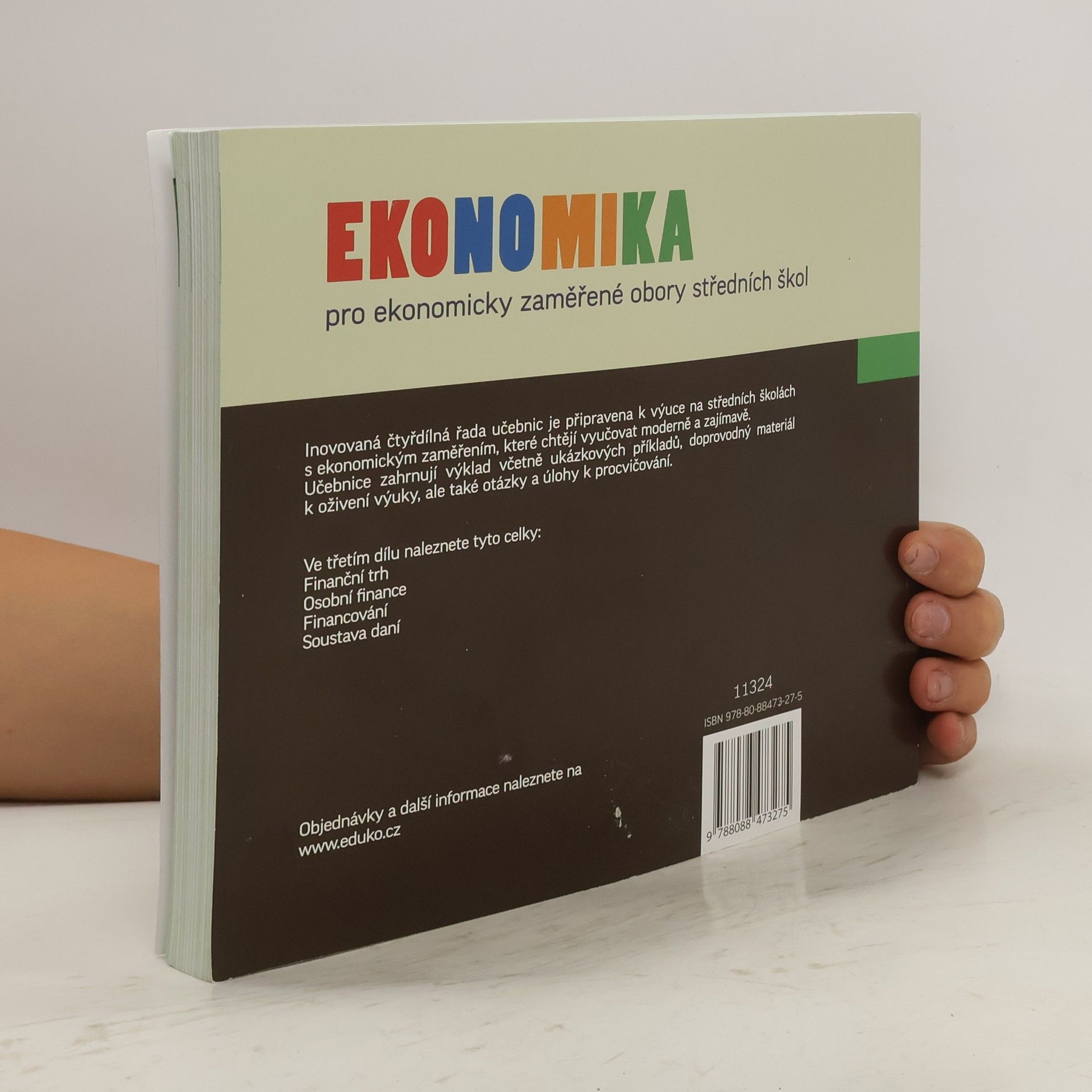 Učebnice má udělenu doložku MŠMT ČR č. j. MSMT-5247/2019-9. V obsahu je zapracován úsporný balíček vládních návrhů. Tištěná učebnice má na druhé straně obálky kód pro vstup do online verze, kde naleznete další příklady a ukázky, podcasty, videa a testy (návod k aktivaci zde). Vydání je nově rozšířeno o podcasty Aleny Jonákové. Student si tak může vybrat mezi psanou a mluvenou formou výkladu. Obsah učebnice je rozdělen do následujících kapitol: Finanční trh Osobní finance Financování Daně a zákonná pojištění Do textu jsou zapracovány aktuální vývojové tendence finančního trhu – rozvoj finančních technologií. Celek daně obsahuje i postup zpracování daňového přiznání k dani z příjmů včetně aktuálních formulářů daňových přiznání.