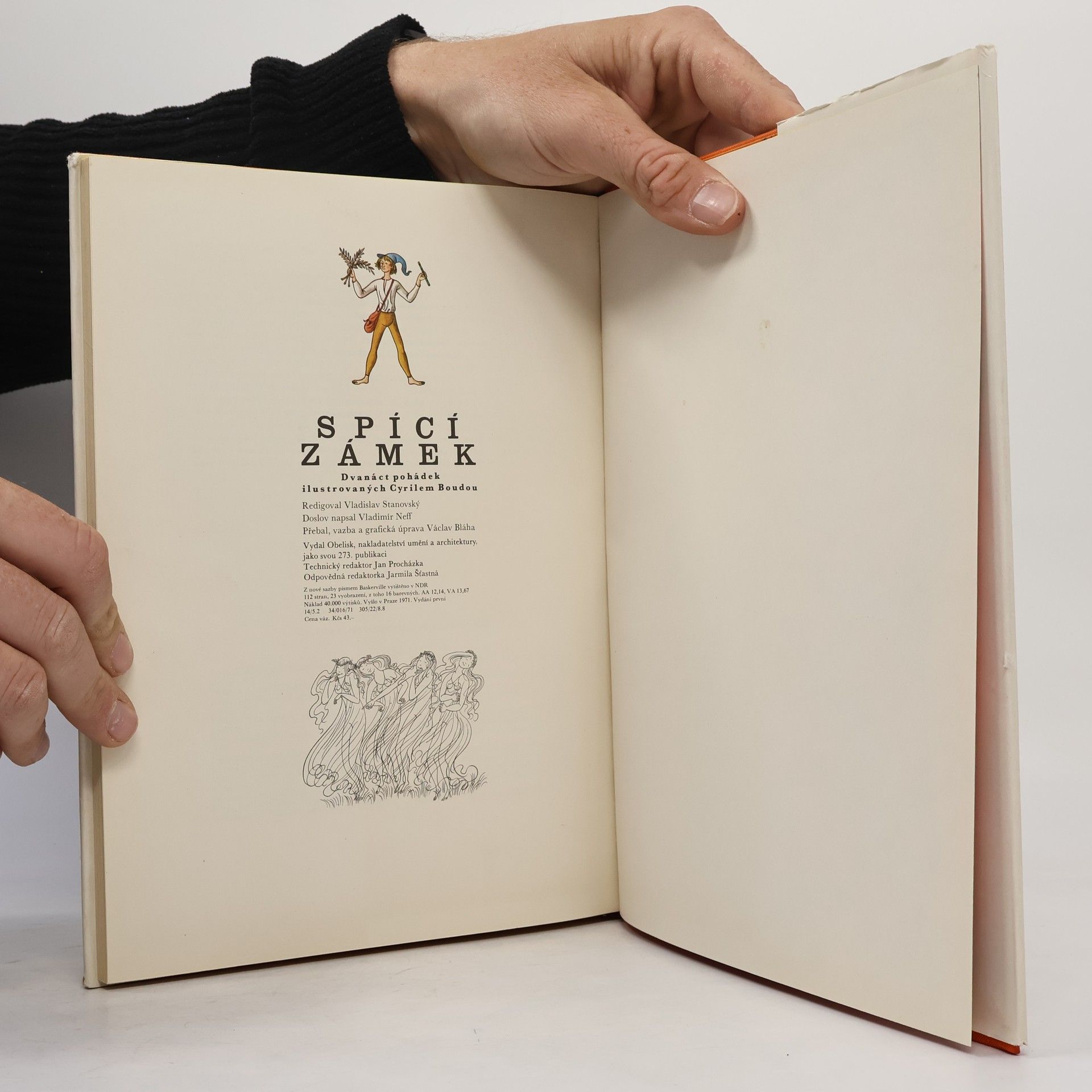 12 pohádek, celostránkové ilustrace Cyrila Boudy. Sbírka obecně známých pohádek ve verzi klasických autorů (J. Swift, K.J. Erben, H.Ch. Andersen, J.Š. Baar, Sv. Čech, O. Wilde, F. Langer) i současných autorů (L. Mašíková, J. Hiršal a J. Kolář, V. Říha) sleduje cílzainteresovat dětskéhočtenáře na pozornosti k ilustračnímu doprovodu knih, na hlubším poznání malířské individuality. Vedle výběru ilustrací Cyrila Boudy plní tento úkol doslov Vladimíra Neffa, podávající návod jak vnímat aposuzovat Boudův doprovod. Pohádky: Gulliver na liliputském dvoře-Jonathan Swift, Zlatovláska-Karel Jaromír Erben, Bezhlavý Templář-František Langer, Stín-Hans Christian Andersen, Zakleté panny na Týřově-Leontina Mašínová, O starostech kocourkovských-Josef Hiršal a Jiří Kolář, Mořská obluda-Jiří Kolář a Josef Hiršal, Vo krejčíři ha ševci-Jindřich Šimon Baar, Vyprávění krejčíkovo-Svatopluk Čech, Strašidlo cantervillské-Oscar Wilde, Facír Pipán-Václav Říha, Spící zámek-Václav Říha.