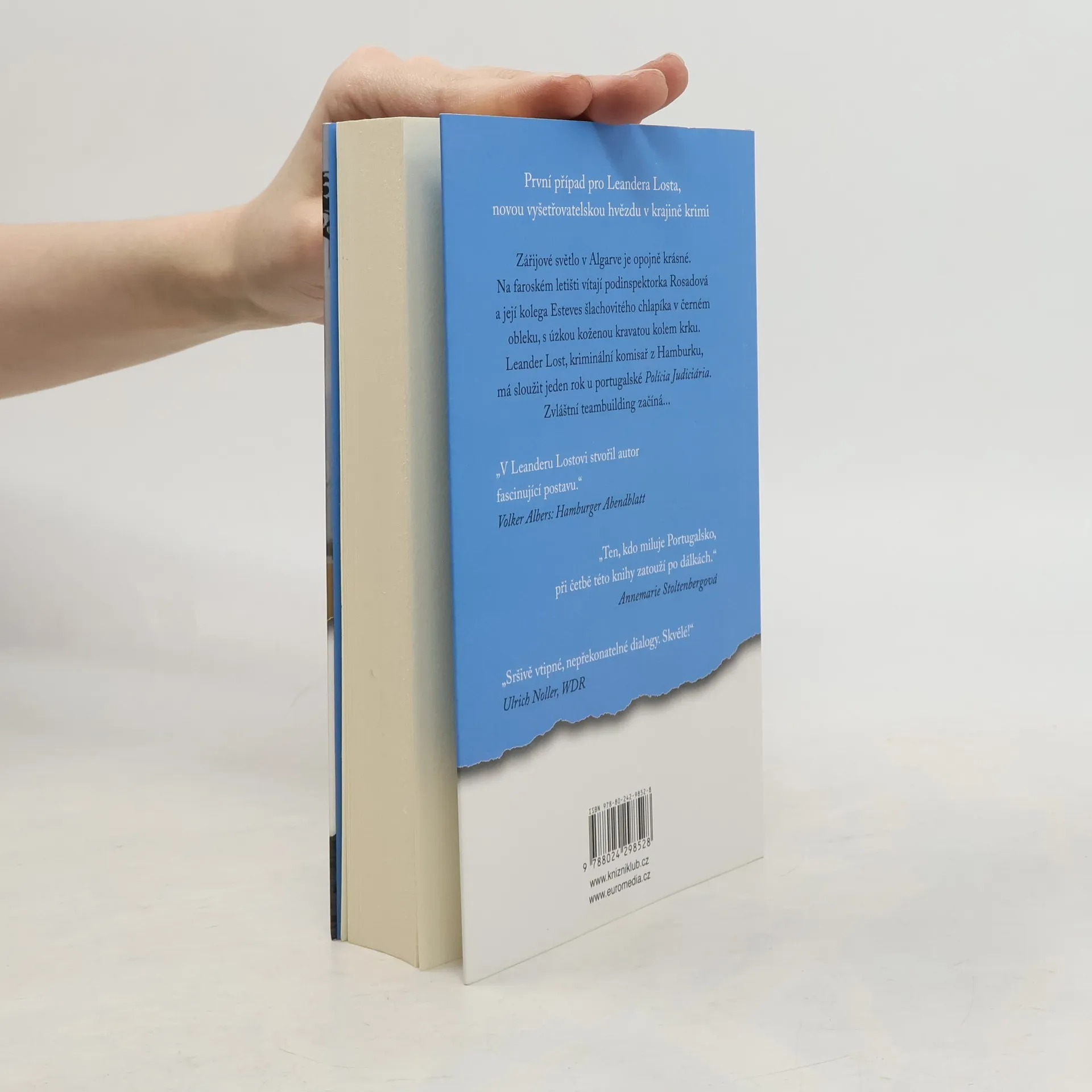 První případ pro Leandera Losta, novou vyšetřovatelskou hvězdu v krajině krimi. Zářijové světlo jižního Portugalska je opojně krásné. Podinspektorka Rosadová a její kolega Esteves vítají na letišti ve Faru šlachovitého chlapíka v černém obleku, s úzkou koženou kravatou kolem krku. Na chlapíkovi však není podivné jen oblečení. Kriminální komisař Leander Lost z Hamburku má u por- tugalské policie sloužit jeden rok. Zvláštní teambuilding začíná…