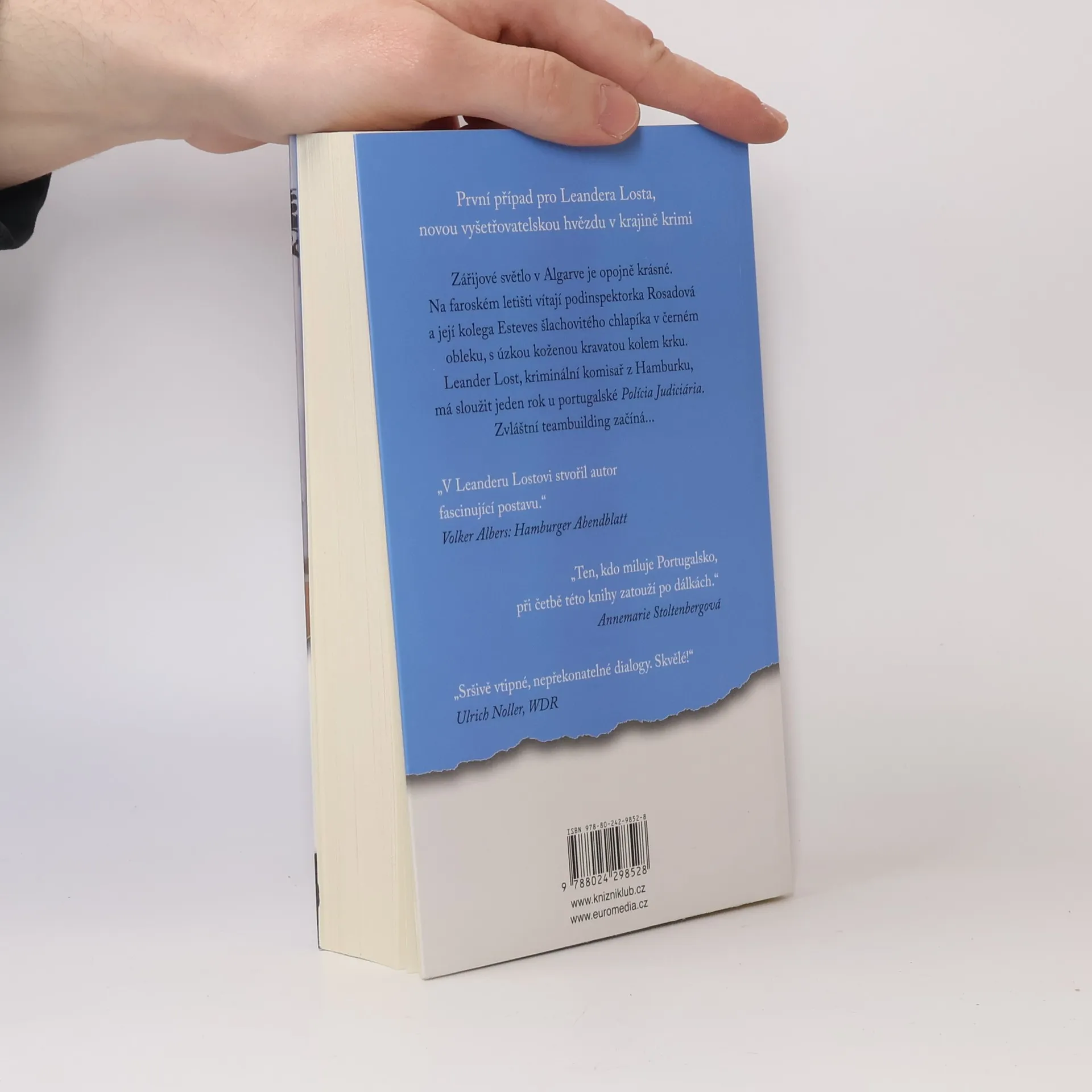 První případ pro Leandera Losta, novou vyšetřovatelskou hvězdu v krajině krimi. Zářijové světlo jižního Portugalska je opojně krásné. Podinspektorka Rosadová a její kolega Esteves vítají na letišti ve Faru šlachovitého chlapíka v černém obleku, s úzkou koženou kravatou kolem krku. Na chlapíkovi však není podivné jen oblečení. Kriminální komisař Leander Lost z Hamburku má u por- tugalské policie sloužit jeden rok. Zvláštní teambuilding začíná…