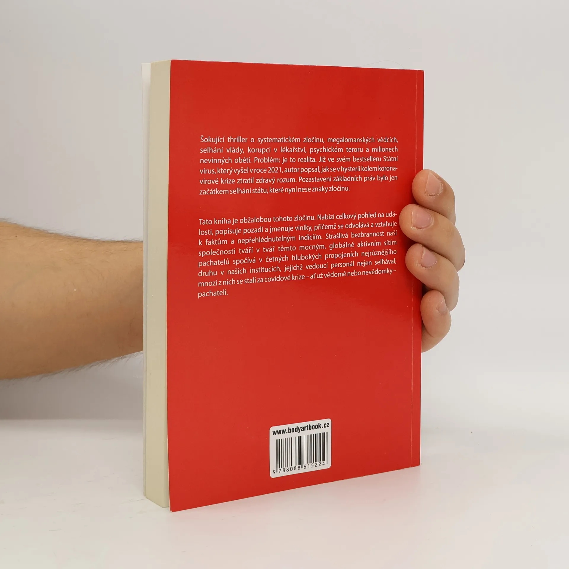 Šokující thriller o systematickém zločinu, megalomanských vědcích, selhání vlády, korupci v lékařství, psychickém teroru a milionech nevinných obětí. Problém: je to realita. Již ve svém bestselleru Státní virus, který vyšel v roce 2021, autor popsal, jak se v hysterii kolem koronavirové krize ztratil zdravý rozum. Pozastavení základních práv bylo jen začátkem selhání státu, které nyní nese znaky zločinu. Tato kniha je obžalobou tohoto zločinu. Nabízí celkový pohled na události, popisuje pozadí a jmenuje viníky, přičemž se odvolává a vztahuje k faktům a nepřehlédnutelným indiciím. Strašlivá bezbrannost naší společnosti tváří v tvář těmto mocným, globálně aktivním sítím pachatelů spočívá v četných hlubokých propojeních nejrůznějšího druhu v našich institucích, jejichž vedoucí personál nejen selhával; mnozí z nich se stali za covidové krize – ať už vědomě nebo nevědomky – pachateli.