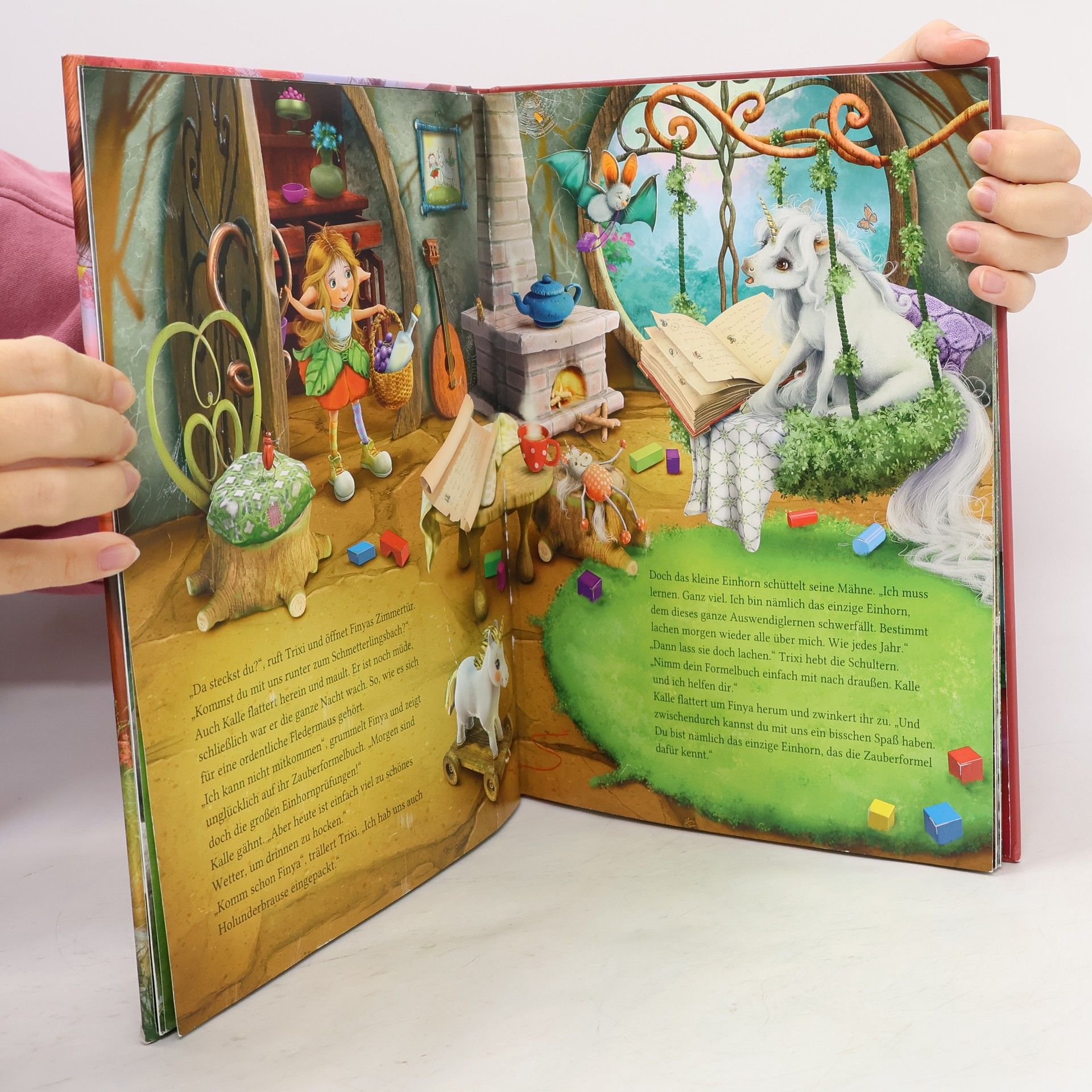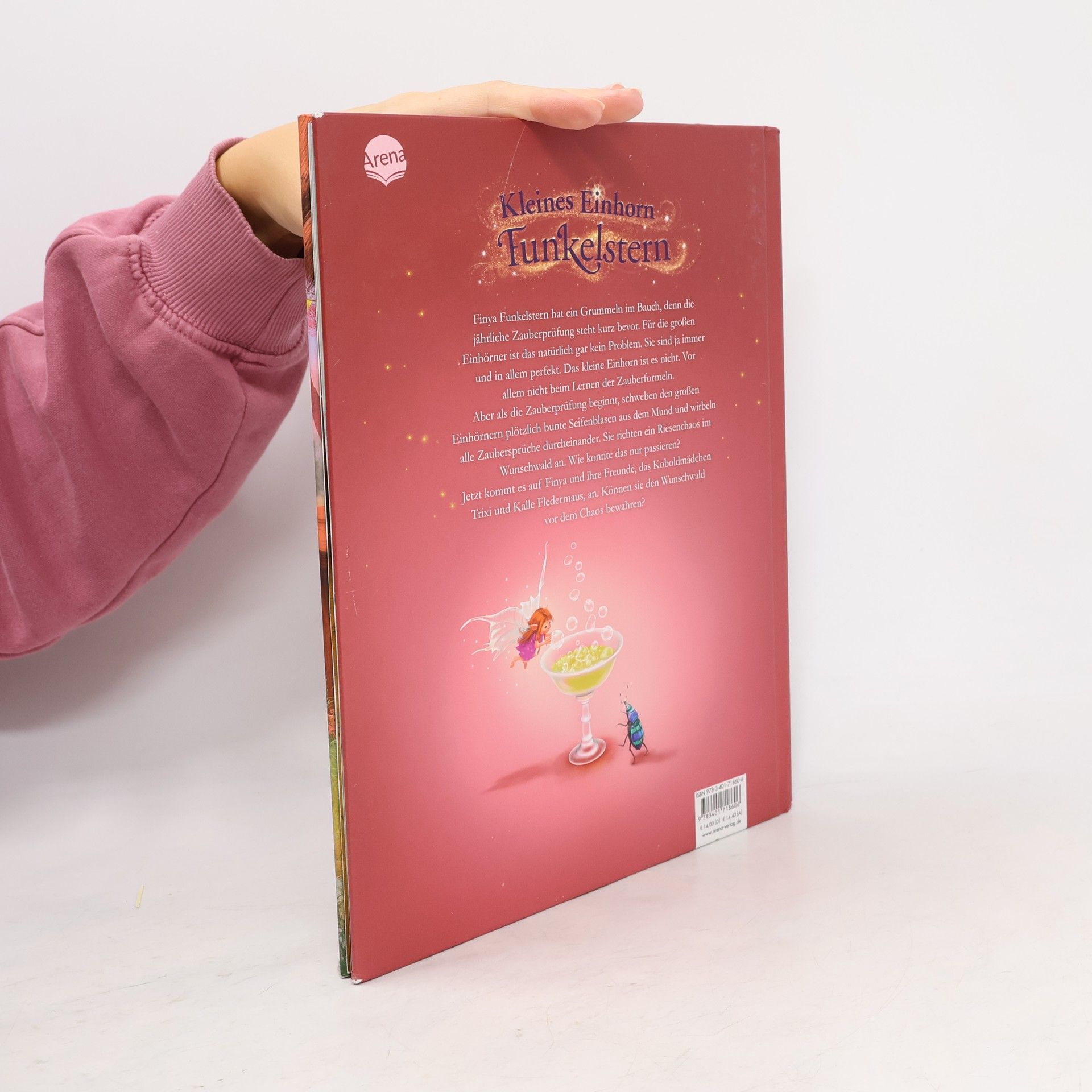 Das kleine Einhorn Finya Funkelstern fühlt sich gar nicht wohl, denn die jährliche Zauberprüfung steht kurz bevor. Für die großen Einhörner ist das natürlich gar kein Problem. Sie sind ja immer und in allem perfekt. Das kleine Einhorn ist es nicht. Vor allem nicht beim Lernen der Zauberformeln.Aber als die Zauberprüfung beginnt, schweben den großen Einhörnern plötzlich bunte Seifenblasen aus dem Mund und wirbeln alle Zaubersprüche durcheinander. Sie richten ein Riesenchaos im Wunschwald an … wie konnte das nur passieren?Jetzt kommt es auf das kleine Einhorn und seine Freunde, das Koboldmädchen Trixi und Kalle Fledermaus an. Können sie den Wunschwald vor dem Chaos bewahren?