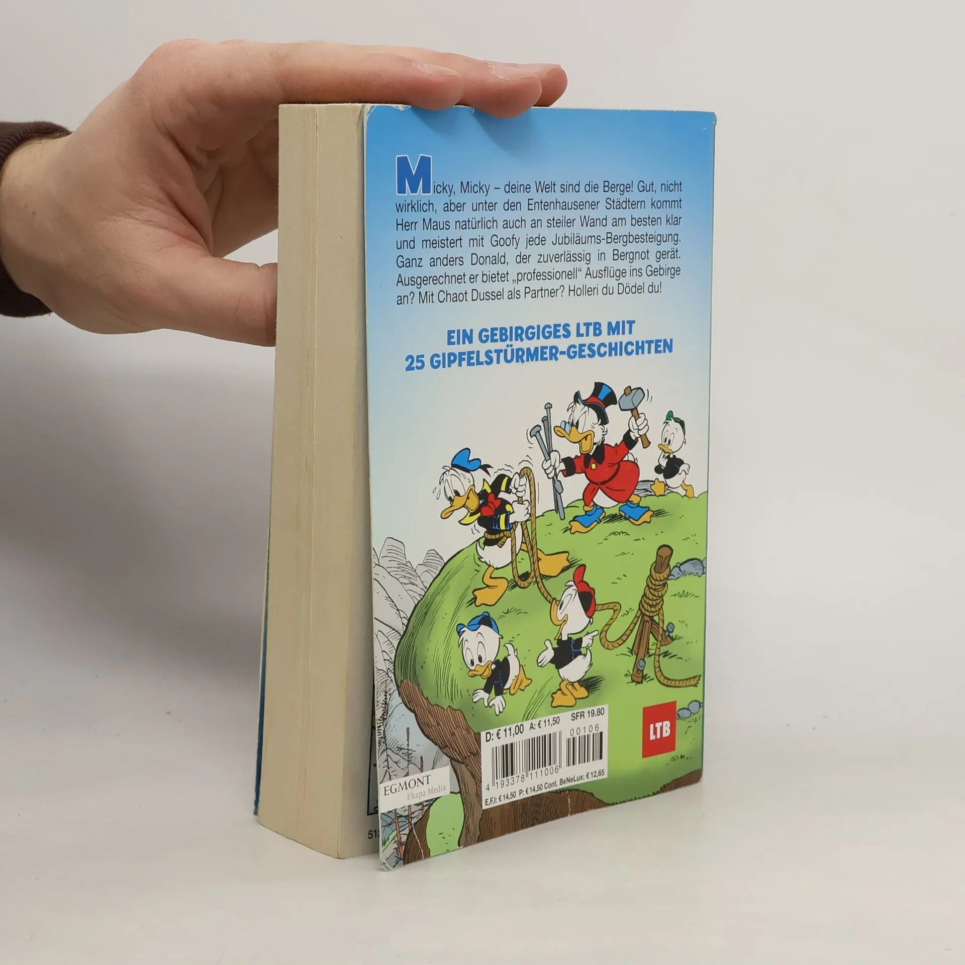 Micky, Micky – deine Welt sind die Berge! Gut, nicht wirklich, aber unter den Entenhausener Städtern kommt Herr Maus natürlich auch an steiler Wand am besten klar und meistert mit Goofy jede Jubiläums-Bergbesteigung. Ganz anders Donald, der zuverlässig in Bergnot gerät. Ausgerechnet er bietet „professionell“ Ausflüge ins Gebirge an? Mit Chaot Dussel als Partner? Holleri du Dödel du!