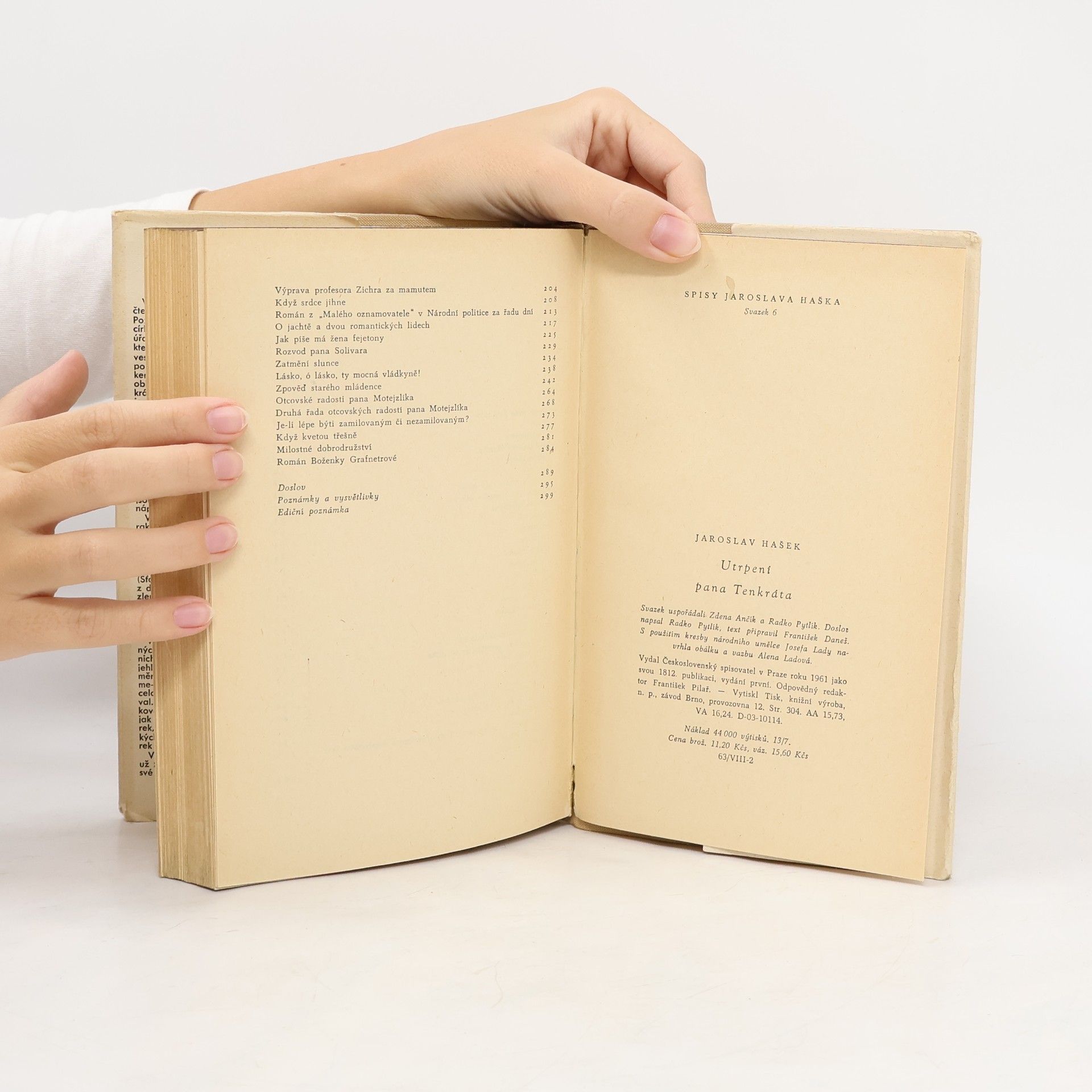 V šestém svazku sebraných spisů setká se čtenář opět s novou tváří Jaroslava Haška. Poznal již Haška tepajícího humorně zlořády církevní, dobírajícího si škodolibě rakouské úřady a policajty, zamýšlejícího se nad leckterým problémem sociálním i shrnujícího do veselých povídek zkušenosti ze svých cest po světě. Tentokrát seznámí se blíže s Haškem zaměřujícím svůj smysl pro humor do oblasti milostných citů. Soubor kratších i rozlehlejších humorných příběhů o lásce a ženitbě, o lidech ženatých a zamilovaných. Tématicky zde čerpá z oblastí milostných vztahů a vysmívá se lidem, kteří lásku využívají. V některých povídkách je Haškova satira hlouběji sociálně a společensky zaměřena.