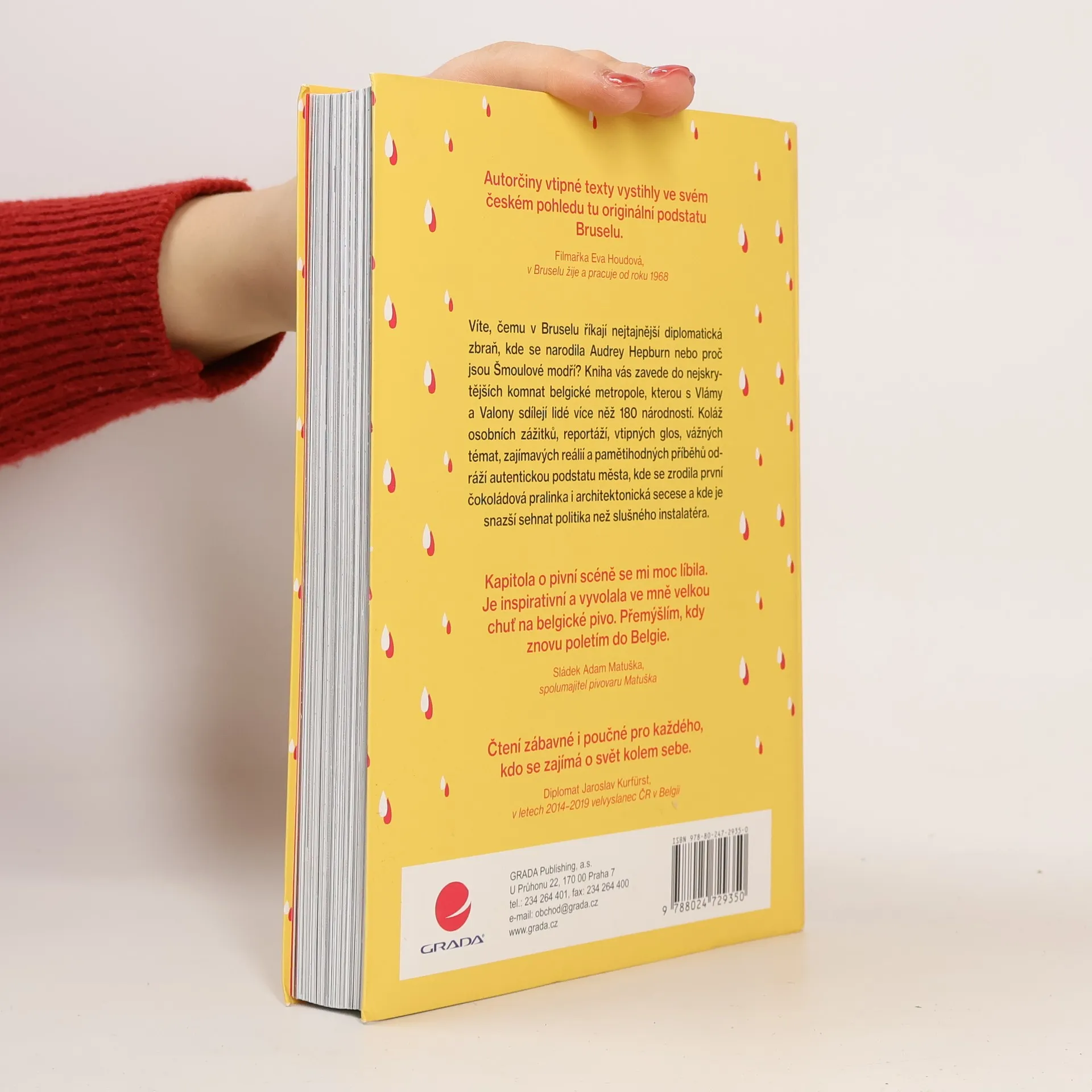 Víte, čemu v Bruselu říkají nejtajnější diplomatická zbraň, kde se narodila Audrey Hepburn nebo proč jsou Šmoulové modří? Kniha vás zavede do nejskrytějších komnat belgické metropole, kterou s Vlámy a Valony sdílí lidé více něž 180 národností. Koláž osobních zážitků, reportáží, vtipných glos, vážných témat, zajímavých reálií a pamětihodných příběhů odráží autentickou podstatu města, kde se zrodila první čokoládová pralinka i architektonická secese a kde je snazší sehnat politika než šikovného instalatéra. Publikace připomíná ohromný úspěch Československa během Světové výstavy Expo 1958, představuje královskou rodinu a monstrózní Justiční palác, vysvětluje necitlivou bruselizaci, neopomíjí patálie sochy čurajícího chlapečka, ozřejmuje důvody, proč Belgičané jako národ vlastně neexistují, nebo odhaluje místo, kde básník Paul Verlaine postřelil svého mladého milence. A jako bonus se naučíte bruselsky a dozvíte se, jak vzniká pravé lambické pivo. Vše v přehledných 60 kapitolách, bohatě vybavených fotografiemi a vtipnými ilustracemi.