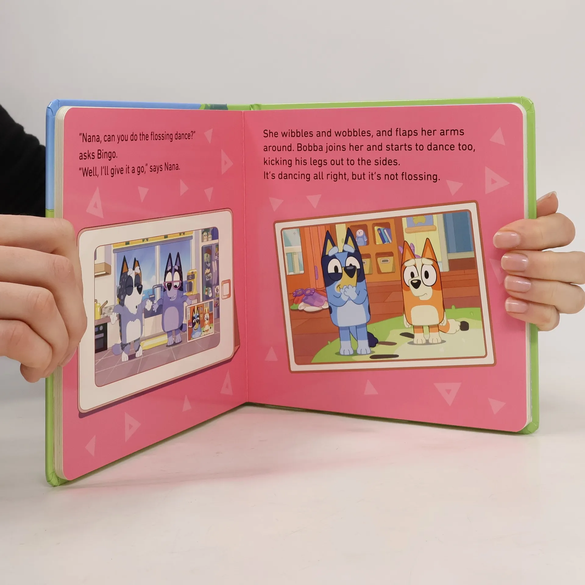 Bluey and Bingo are playing Grannies. While playing, they get stuck on a question: can grannies dance?