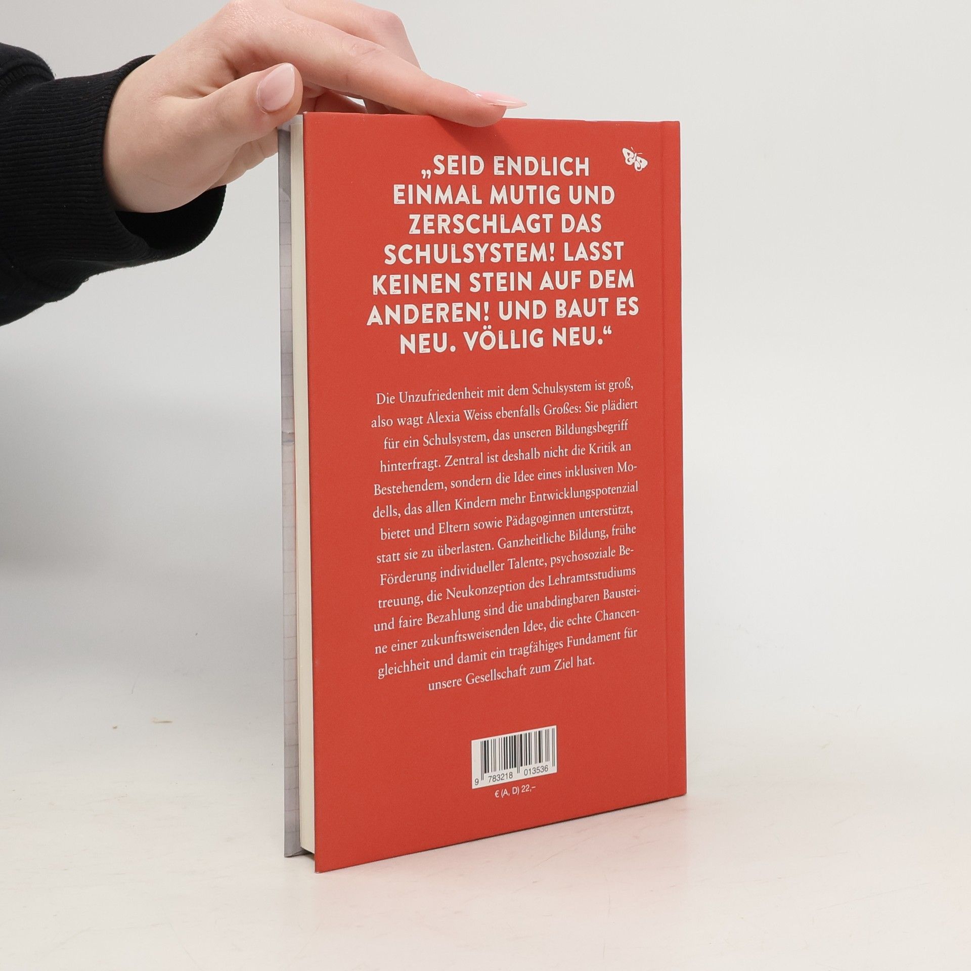 „Die Notwendigkeit zur Veränderung an Schulen könnte man nutzen, um nicht nur wieder ein kleines Reförmchen anzugehen, sondern das Bildungswesen neu zu konzipieren.“Die Unzufriedenheit mit dem Schulsystem ist groß: Kinder sind unter- oder überfordert, Eltern beklagen zu großen Druck und ein zu hohes Lernpensum. Lehrer*innen wollen unterrichten, sehen aber, dass sie manche Schüler*innen nicht erreichen und am Ende der Notenschnitt alle Bemühungen überlagert. Direktor*innen sind frustriert vom ständig steigenden Administrationsaufwand. Also wie weiter?Alexia Weiss wagt Großes: Sie plädiert für ein Schulsystem, das unseren Bildungsbegriff hinterfragt. Zentral ist deshalb nicht die Kritik an Bestehendem, sondern die Idee eines inklusiven Modells, das allen Kindern mehr Entwicklungspotenzial bietet und Eltern sowie Pädagog*innen unterstützt, statt sie zu überlasten. Ganzheitliche Bildung, frühe Förderung individueller Talente, psychosoziale Betreuung, die Neukonzeption des Lehramtsstudiums und faire Bezahlung sind die unabdingbaren Bausteine einer zukunftsweisenden Idee, die echte Chancengleichheit und damit ein tragfähiges Fundament für unsere Gesellschaft zum Ziel hat.