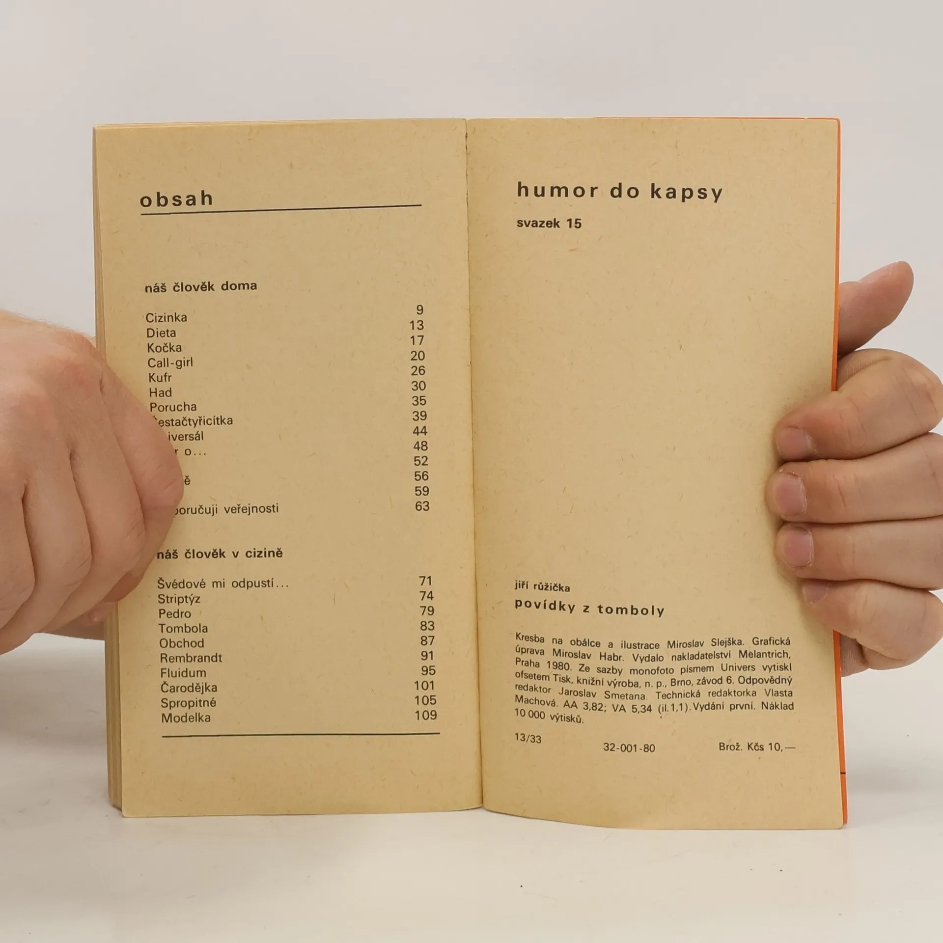 Soubor úsměvných, kritických i satirických povídek představuje našeho člověka ve veselých situacích doma i v cizině. 32-001-80