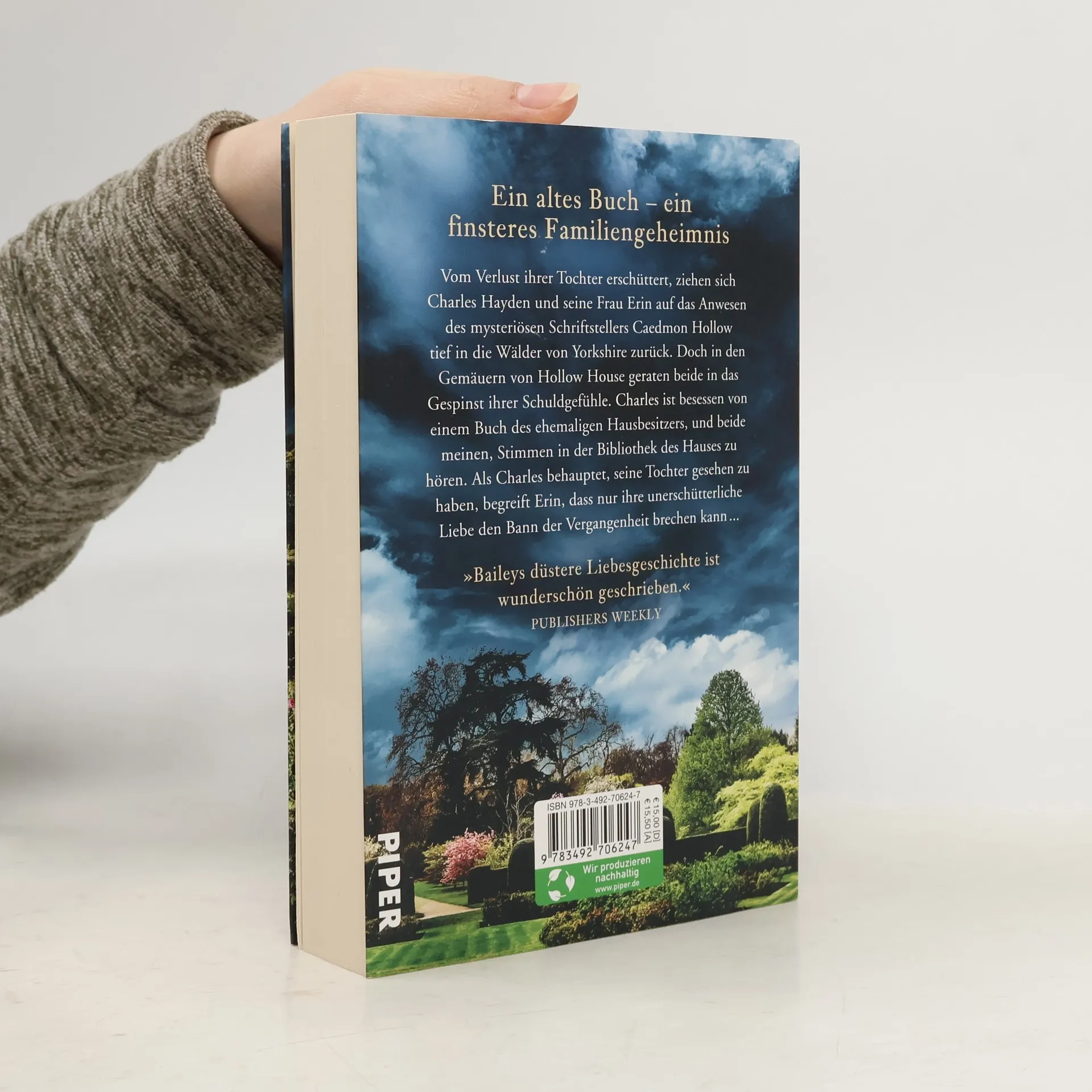 Ein altes Buch – ein finsteres Familiengeheimnis Vom Verlust ihrer Tochter erschüttert, ziehen sich Charles Hayden und seine Frau Erin zurück – bis Erin erfährt, dass sie das Anwesen eines mysteriösen Schriftstellers geerbt hat, tief in den Wäldern von Yorkhsire: Hollow House. Dort wollen sie neu anfangen. Doch in den Gemäuern von Hollow House geraten beide in das Gespinst ihrer Schuldgefühle. Charles ist besessen von einem Kinderbuch, und beide hören Stimmen in der Bibliothek des Hauses. Als Charles behauptet, seine Tochter gesehen zu haben, begreift Erin, dass nur ihre unerschütterliche Liebe den Bann der Vergangenheit brechen kann ... »Eine düstere Liebesgeschichte, wunderschön geschrieben.« Publishers Weekly