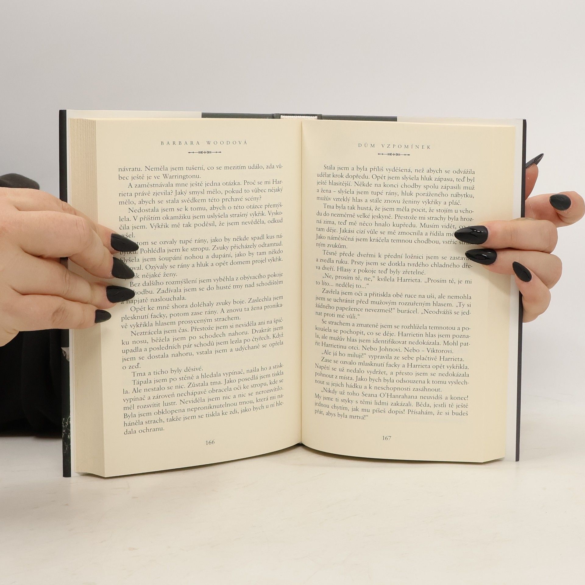 Přeloženo z německého vydání (Haus der Erinnerungen, 1995) anglického originálu. Andrea se po čtvrtstoletí vrací z USA do svého rodného domu v malém městečku Warrington v Anglii, kterou s rodiči opustila, když jí byly dva roky. Důvodem návštěvy je vážný stav jejího dědečka, cesta je však pro ni vítaným únikem z krachu dalšího nevydařeného vztahu. Netuší však, že dům, v němž nyní žijí její prarodiče, má děsivou a krutou historii. Když se od babičky začíná dozvídat střípky příběhů, jež se tu odehrály, ani zdaleka by ji nenapadlo, že se v nejbližší době stane jejich přímou účastnicí…