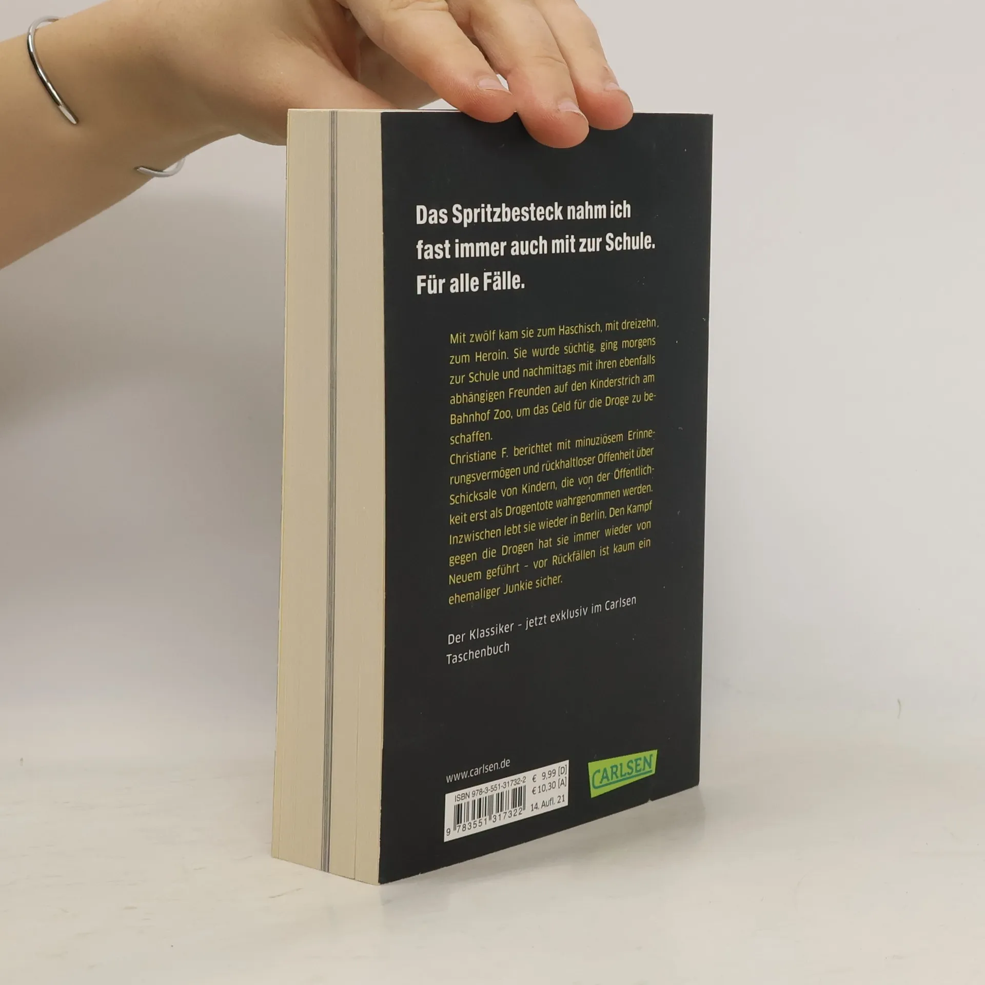 Schonungslos ehrlich – eine Kindheit zwischen Heroinabhängigkeit und Kinderstrich. Christiane F. s lebenslanger Kampf gegen die Sucht. Mit zwölf kam Christiane F. in einem evangelischen Jugendheim zum Haschisch, mit dreizehn in einer Diskothek zum Heroin. Sie wurde süchtig, ging morgens zur Schule und nachmittags mit dem ebenfalls heroinabhängigen Freunden auf den Kinderstrich am Bahnhof Zoo, um das Geld für die Droge zu beschaffen. Ihre Mutter bemerkte fast zwei Jahre lang nichts vom Doppelleben ihrer Tochter. Christiane F. berichtet mit minutiösem Erinnerungsvermögen und rückhaltloser Offenheit über Schicksale von Kindern, die von der Öffentlichkeit erst als Drogentote zur Kenntnis genommen werden. Nach turbulenten Jahren in Amerika und Griechenland lebt die Autorin wieder in Berlin und machte im Sommer 2008 erneut Schlagzeilen. Den Kampf gegen die Drogen hat sie immer wieder von neuem geführt - vor Rückfällen ist kaum ein ehemaliger Junkie sicher. Die Vorlage zur neuen Amazon-Original-Serie nach einer wahren Begebenheit! Mit Originalfotos und Bildern aus dem Leben von Christiane F.