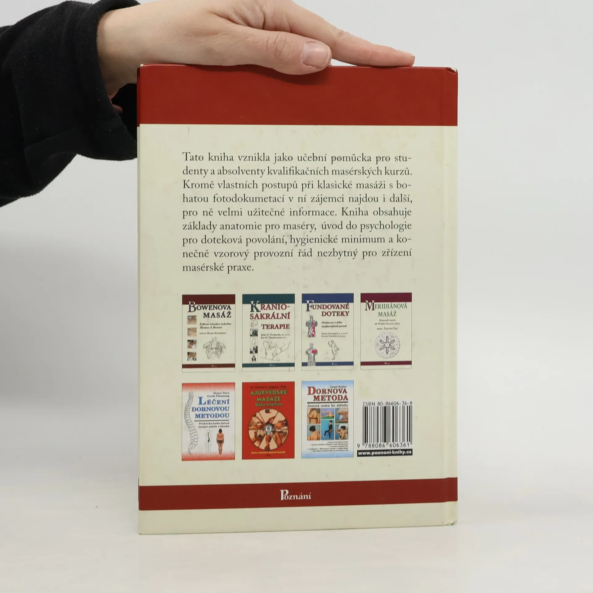 Tato kniha vznikla jako učební pomůcka pro studenty a absolventy kvalifikačních masérských kurzů. Kromě vlastních postupů při klasické masáži s bohatou fotodokumentací v ní zájemci najdou i další, pro ně velmi užitečné informace. Kniha obsahuje základy anatomie pro maséry, úvod do psychologie pro doteková povolání, hygienické minimum a konečně vzorový provozní řád nezbytný pro zřízení masérské praxe.