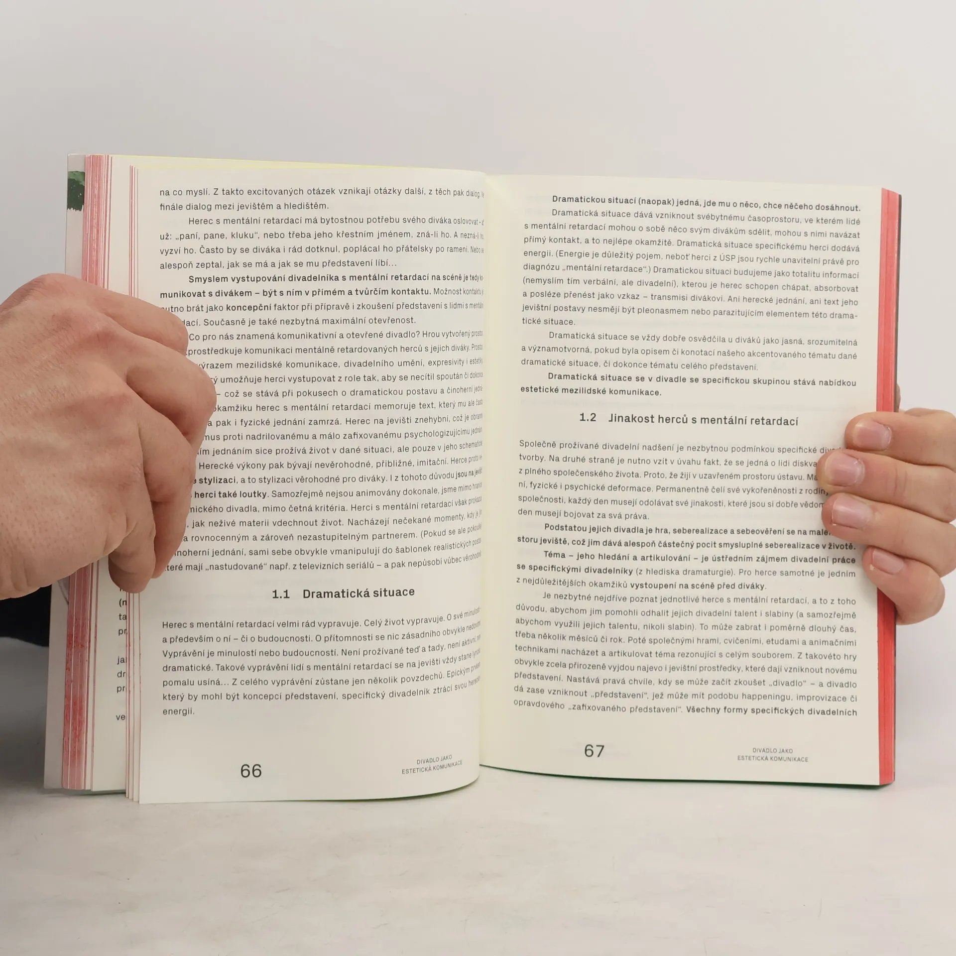 Divadelní tvorba ve specifických skupinách je odbornou studií o dvou částech. První se zaměřuje na divadelní tvorbu lidí s mentální retardací a nastiňuje problematiku lidí s postižením v kontextu divadelní tvorby s přesahem k výtvarnému umění a divadelní antropologii a zachycuje základní principy této práce. Texty Vladimíra Nováka a Kateřiny Šplíchalové z DAMU vycházejí z jejich disertačních prací a především z jejich společné třináctileté praxe divadelní tvorby s lidmi s mentální retardací. Druhá část knihy je zaměřena na divadelní tvorbu Neslyšících. Příspěvky Zoji Mikotové a Veroniky Broulíkové se týkají vzniku, existence a vývoje Ateliéru výchovné dramatiky pro Neslyšící na DIFA JAMU v Brně. Tento ateliér je laboratoří hledání nových postupů při práci s Neslyšícími a pro Neslyšící, jedná se především o rozvoj pohybové a výtvarné kreativity a rozvoj tvůrčího potenciálu specifické komunikace. Texty Kateřiny Jebavé a Hany Volkmerové Galetkové pak naplňují výzkumná témata, která odpovídají novým trendům v péči, výchově a vzdělávání jedinců a skupin se specifickými potřebami.